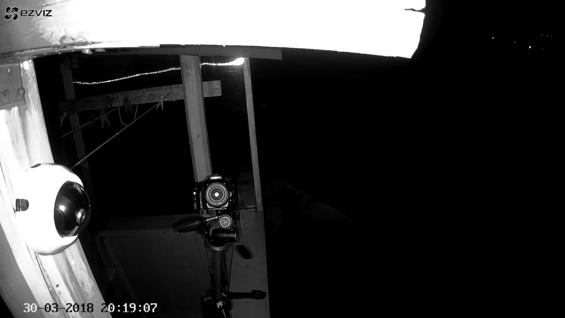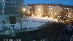 С наступлением вечера мы пристально наблюдали за картинкой, транслируемой с камеры. Но даже когда исчез последний намек на дневной свет и включились фонари, камера по прежнему работала в цветном дневном режиме. На третьем стоп-кадре,в правой части картинки, можно видеть работающую инфракрасную подсветку соседней IP-камеры, которая давно переключилась в ночной режим. И этот сосед — вовсе не подслеповатый дешевый аппарат, а вполне современная камера, предназначенная для использования в составе профессиональных комплексов видеонаблюдения.