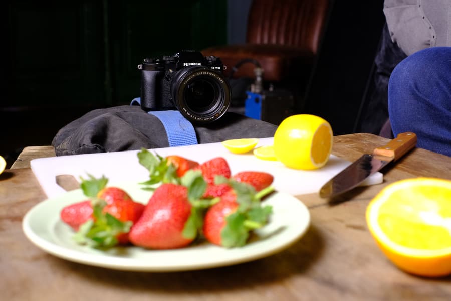 Таким образом, я точно понимал, какие участки в белом у меня будут не в проработке, при этом в тенях получалось больше информации о свете и цвете. Визуально на мониторе камеры при съемке левая от актера часть кадра выглядела очень темной, без информации. Однако при последующей цветокоррекции стало понятно, что все нужные детали там присутствуют. Скажем за это спасибо новому датчику изображения, выполненному по новой технологии X Trans, и сенсору с функцией обратной засветки.