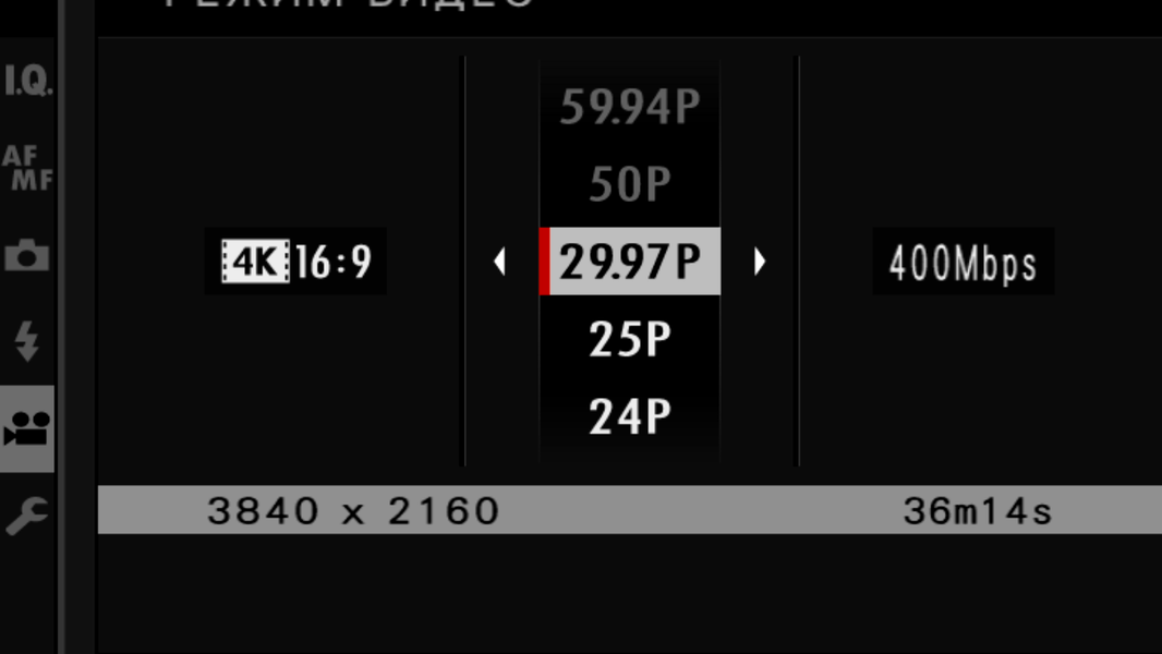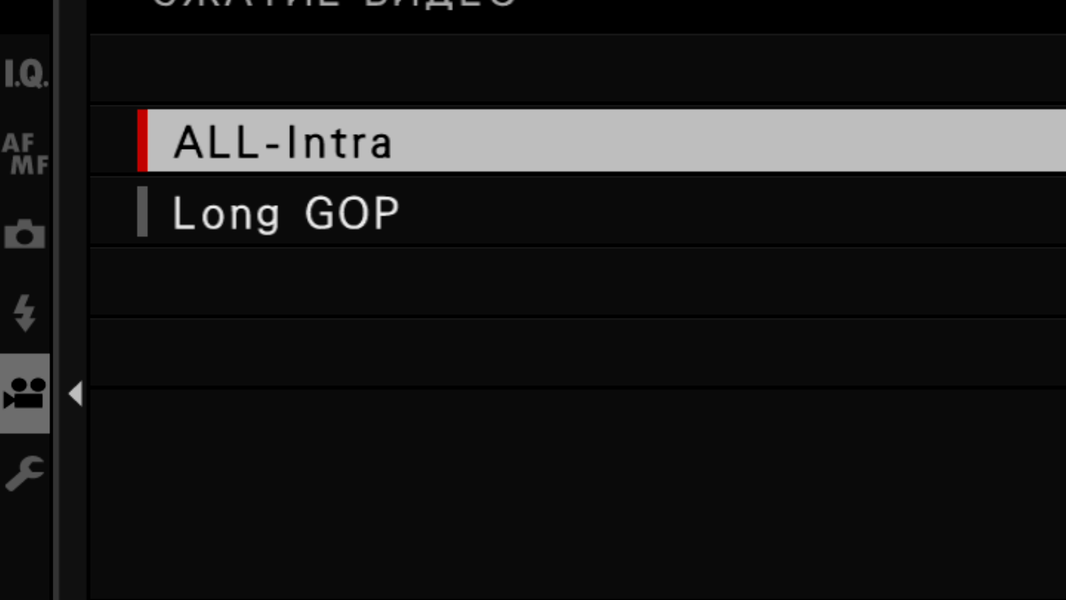 Если сложить все имеющиеся в настройках камеры варианты форматов, способов сжатия, размеров и частот кадров, то получится много... Нет, получится чрезвычайно много вариантов режимов записи. Даже краткое их перечисление занимает целый абзац: от 4K (4096×2160 — вариант с названием DCI) с частотами 59.94p/50p/29.97p/25p/24p/23.98p и битрейтами 400/200/100 Мбит/с, сжатым AVC либо HEVC 4K, до высокоскоростной Full HD записи с частотами 120p/100p и битрейтом 200 Мбит/с, которая может длиться до 6 минут.