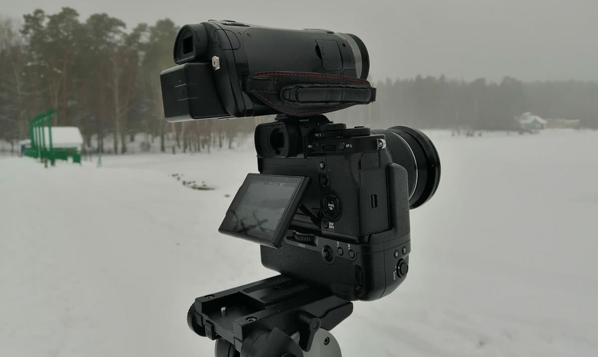 А теперь чуточку развлечемся. Многие читатели жаждут видеть сравнение камер разных моделей и разных производителей. Такое сравнение, чтобы, как говорится, лоб-в-лоб. На практике осуществить такое сравнение под силу разве что студиям, имеющим в распоряжении парк техники и подходящие условия. Другой вопрос — нужно ли им это? Разумеется, не нужно. Но для нас желание читателя — закон. Поэтому, взяв наилучшее из того, что имеется в распоряжении (старенькая, почти десятилетняя видеокамера с «честным» Full HD 50p), мы водрузили ее на «башмак» рассматриваемого фотоаппарата и сняли короткую панораму.