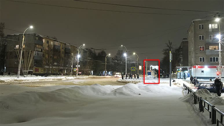 Для того, чтобы выяснить, при каком уровне усиления в кадре появляется цифровой шум, мы произвели стандартную съемку вечерней улицы: диафрагма полностью открыта, выдержка переведена в автоматический режим. Вместе с увеличением чувствительности выдержка автоматически укорачивалась. Таким образом автоматика старалась не допустить пересвечивания кадра.