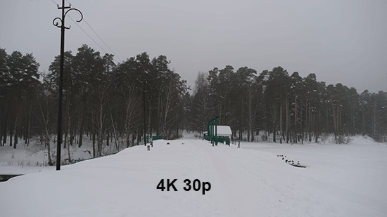 Угол обзора камеры изменяется каждый раз при смене режимов: 4K, Full HD и скоростная запись. Это существенно затрудняет съемку каких-то статичных сцен в разных режимах. Надеемся, в реальных условиях такая съемка встречается редко, но, тем не менее, следует учитывать этот фактор: если камерой, установленной на штатив, хочется снять одну и ту же сцену сначала в «полном» качестве, а потом — для получения спецэффекта — в скоростном режиме, то угол обзора в полученных сценах будет разным. А это — дополнительные трудности при последующем монтаже.