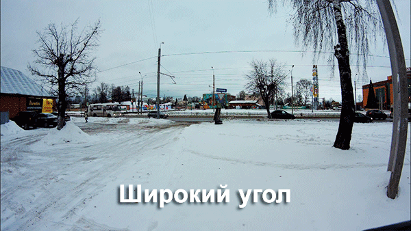 Угол обзора камеры физически остается всегда одним и тем же. Ведь в ее оптической системе нет и не может быть движущихся частей. Изменение угла обзора в камере можно изменить в настройках, но изменение это производится программным способом — исходный кадр попросту обрезается, а затем вновь растягивается до нужного размера картинки. В итоге детализация падает сначала на 100 ТВ-линий (средний угол), а затем уже на 200 ТВ-линий (узкий угол). Это будет видно позже при изучении разрешающей способности камеры. А пока можно оценить степень сужения угла обзора в разных режимах: при его изменении в настройках, а также при активации встроенного стабилизатора изображения.