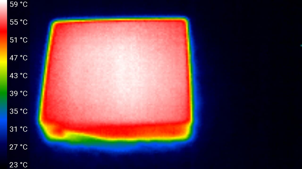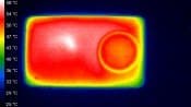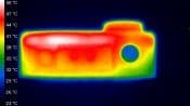 Миниатюризация электроники вместе с увеличением ее производительности всегда приводит к увеличению количества выделяемого тепла. Что, в свою очередь, усиливает риск аварийных отключений вследствие перегрева. Взглянем, как обстоят дела у нашей камеры с этой неисправимой проблемой. Следующие теплоснимки получены во время работы камеры после одного часа беспрерывной видеозаписи в режиме 4K в комнатных условиях при температуре около 25 °C.