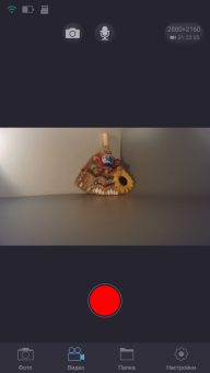 Единственная механическая кнопка расположена на верхней части корпуса камеры. Длительное нажатие на эту кнопку включает/выключает камеру, а короткими нажатиями осуществляются старт и остановка записи либо создание фотоснимка.