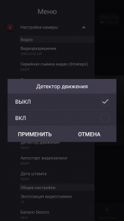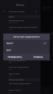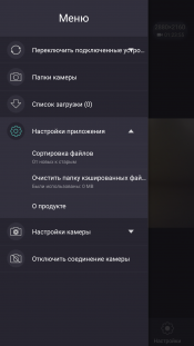 Пункты служебного меню настроек имеют достаточно крупные размеры, чтобы не ошибиться, прикасаясь к дисплею. Некоторые функции, находящиеся в настройках, могут отсутствовать в мобильном приложении или наоборот, но это, несомненно, временное явление, которое изменится вместе с обновлением прошивки либо приложения. Само же приложение, которое называется OKCam, работает на любом устройстве под управлением Android или iOS.