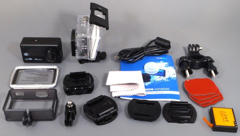 Форм-фактор камеры стандартен для так называемых «клонов» одной известной на весь мир торговой марки. Точнее, так: некогда «одна известная марка» задала такой «кирпичный» стандарт. Хорош он или плох — рассуждать теперь бесполезно, поскольку с появлением дисплеев в мини-аппаратуре, форма параллелепипеда стала единственно возможной при конструировании экшн-камер.