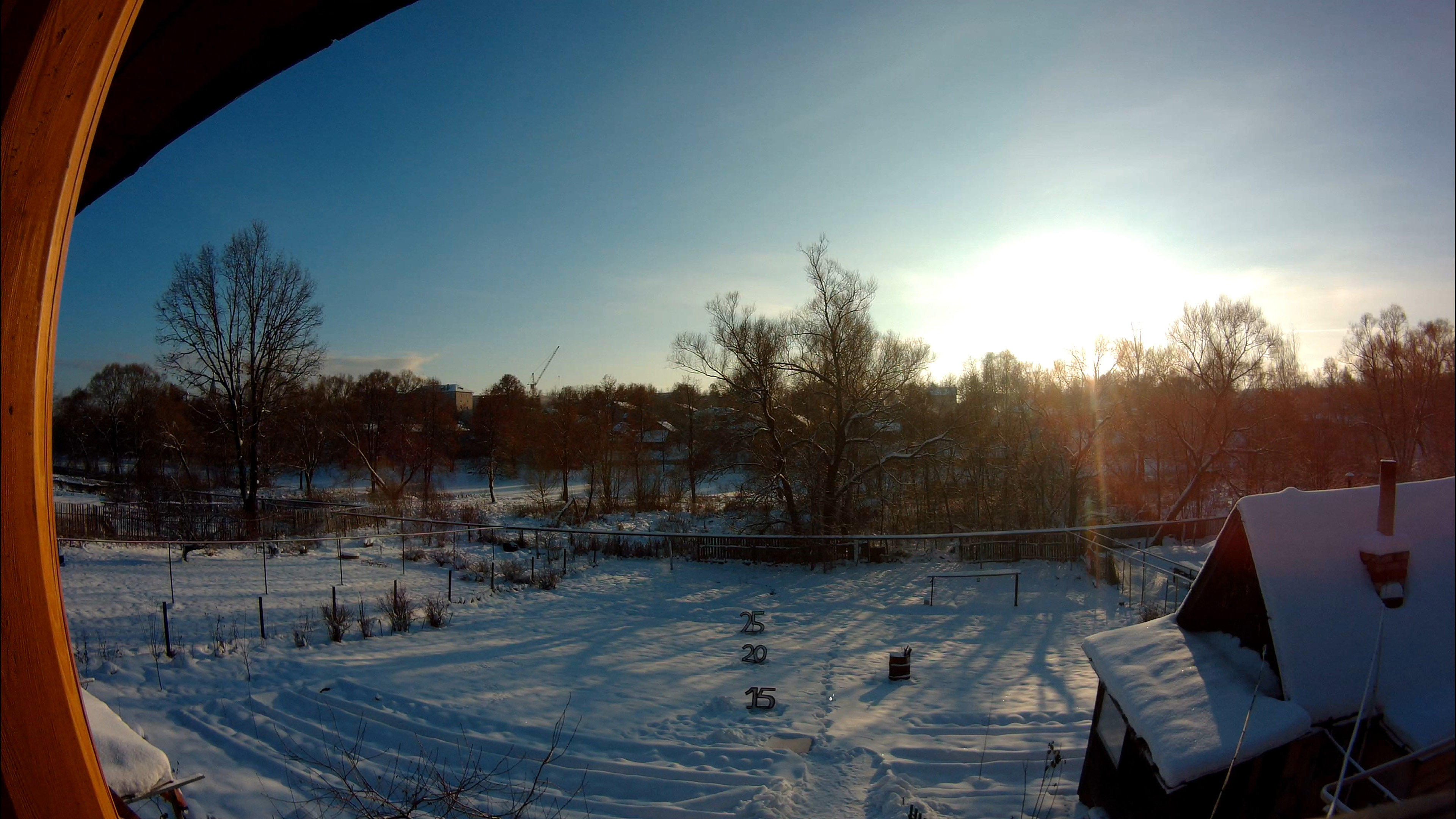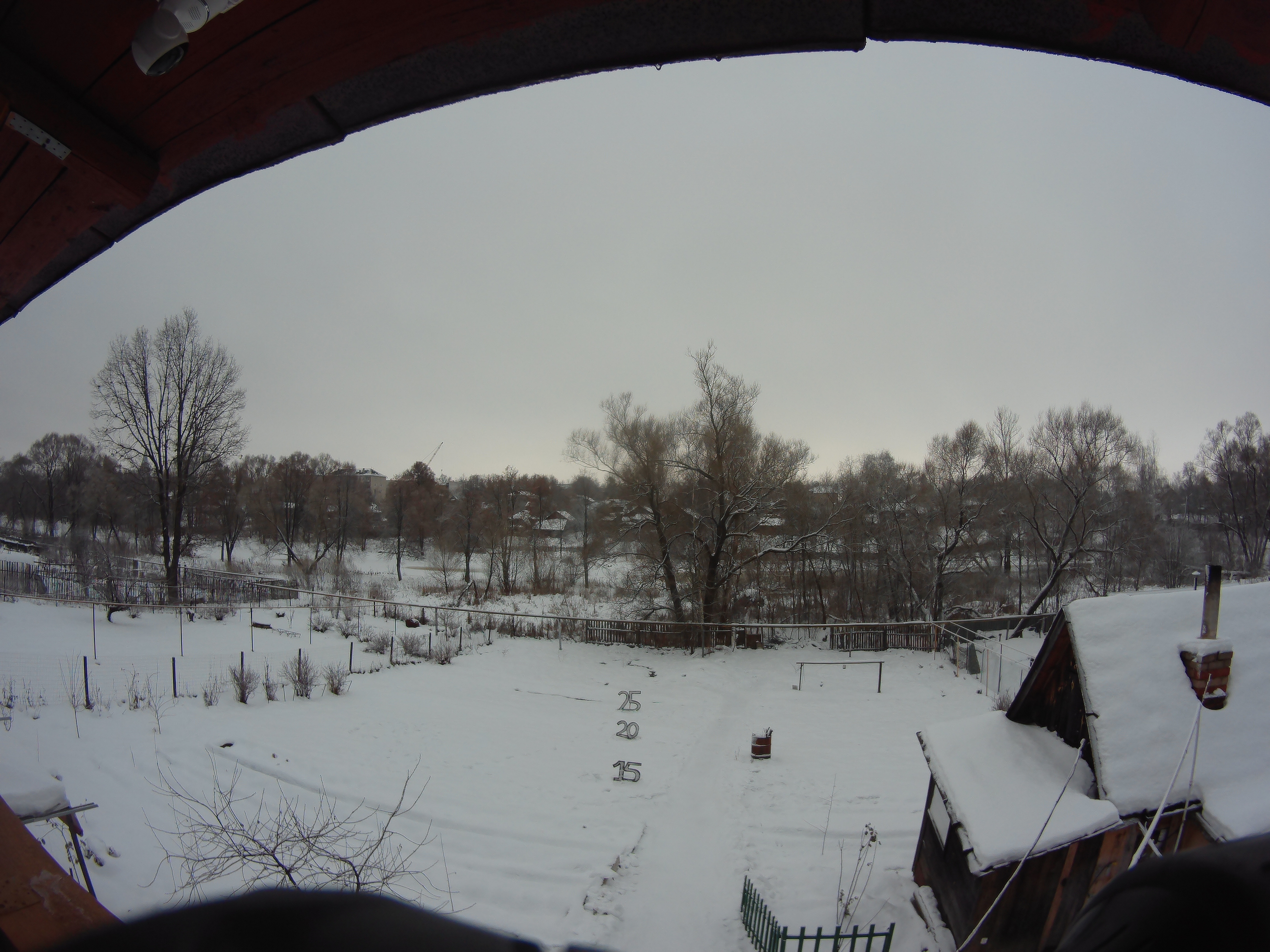 Прежде всего нужно попросить прощения за столь темную сцену. Это не раннее утро и даже не сумерки, несмотря на ошибочную дату, прописанную в служебных полях файла. Это самый что ни на есть разгар дня, около полудня. К сожалению, погода в нашей местности с октября по апрель выглядит преимущественно вот так. Солнышко если и проглядывает, то в очень редкие дни и на пару часов, поймать его бывает довольно сложно (единственный раз за две недели это все же удалось сделать). Во время этой съемки мы даже измерили освещенность, она оказалась ниже 1000 люкс. Такой уровень освещенности бывает, например, в тени здания солнечным днем. Зима, ничего не поделаешь. Но изучим полученные кадры.