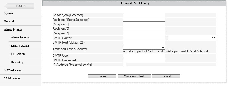 Указанные выше действия камеры, а именно отправка тревожных снимков на E-Mail и FTP, требуют предварительной регистрации указанных сервисов: указания необходимых параметров электронной почты отправителя, ввод адресов получателей (до четырех адресатов) и параметров FTP-сервера, куда планируется «заливать» снимки.