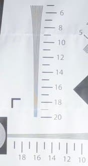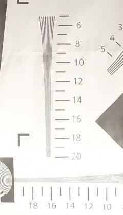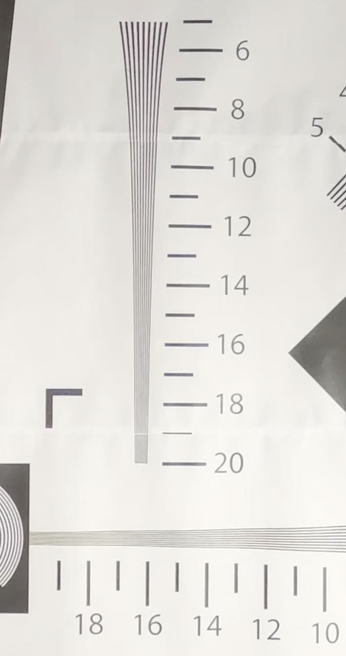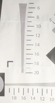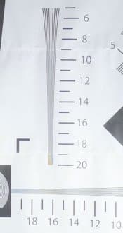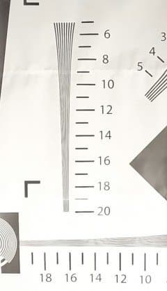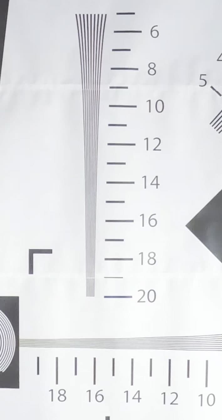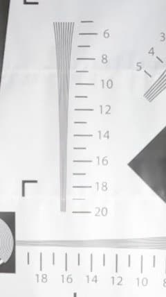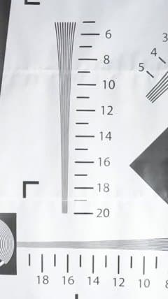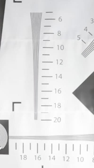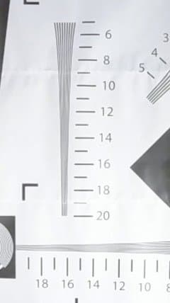 Детализация изображения в таких кроп-режимах, само собой, падает. И мы сейчас это докажем, взяв старший режим съемки 5.3K с размером 5312×2988 пикселей и частотой 60 кадров в секунду. Видно, что детализация падает с 2000 ТВ-линий по горизонтальной стороне кадра при съемке с «широким углом» до 1400 ТВ-линий с «узким углом».