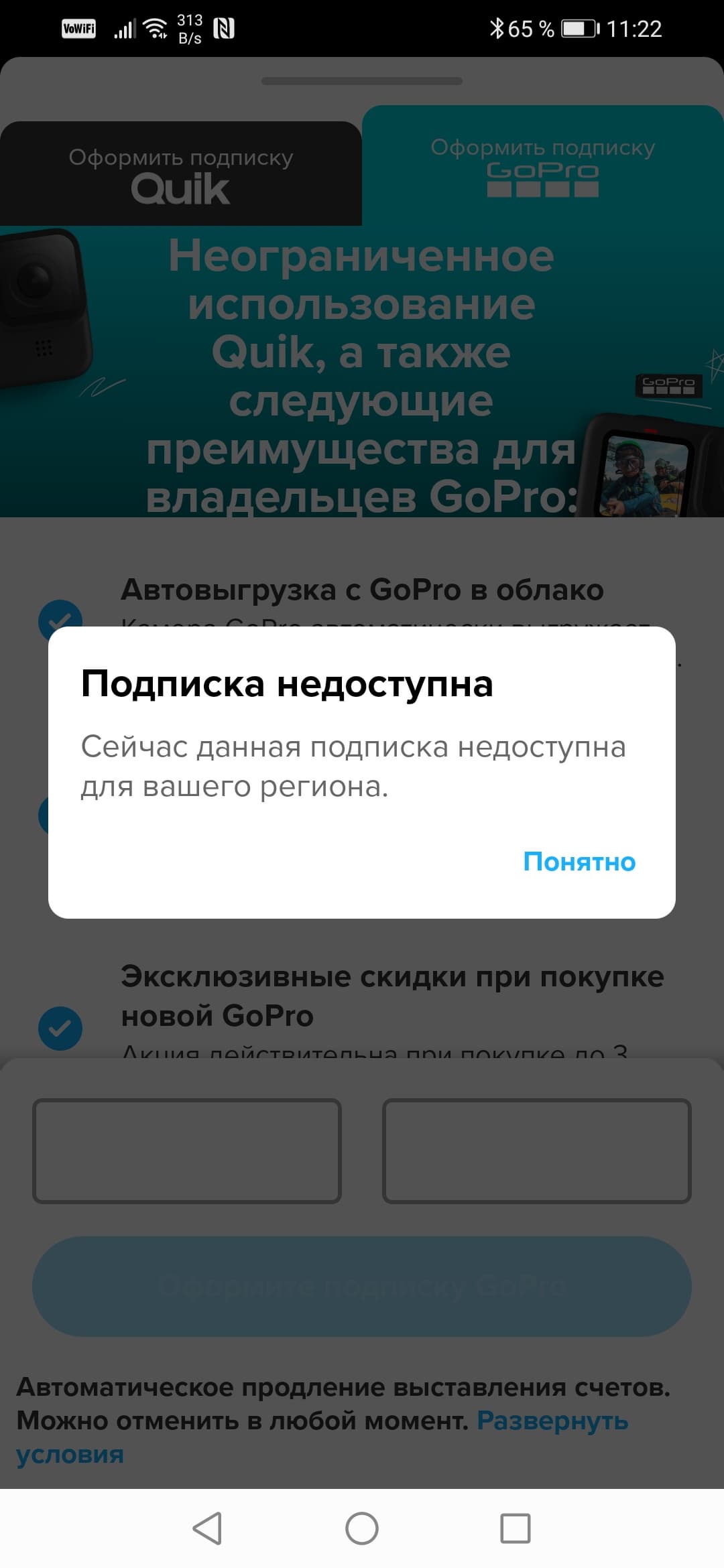 Несмотря на новое название, приложение, как и раньше, обладает рядом недостатков. Например, если во время сеанса связи с камерой вы переключитесь на другое приложение или просто ответите на входящий звонок, то, вернувшись в GoPro Quik, придется подождать, пока соединение восстановится. И совсем не факт, что это произойдет. Возможно, аналогичное приложение для iOS ведет себя иначе и не страдает таким недостатком. Но мы не можем это проверить, т. к. в наличии имеется лишь старенький iPhone, не поддерживающий работу с камерой Hero10 (предыдущие модели в списке устройств имелись, а вот «десятки» почему-то не оказалось).