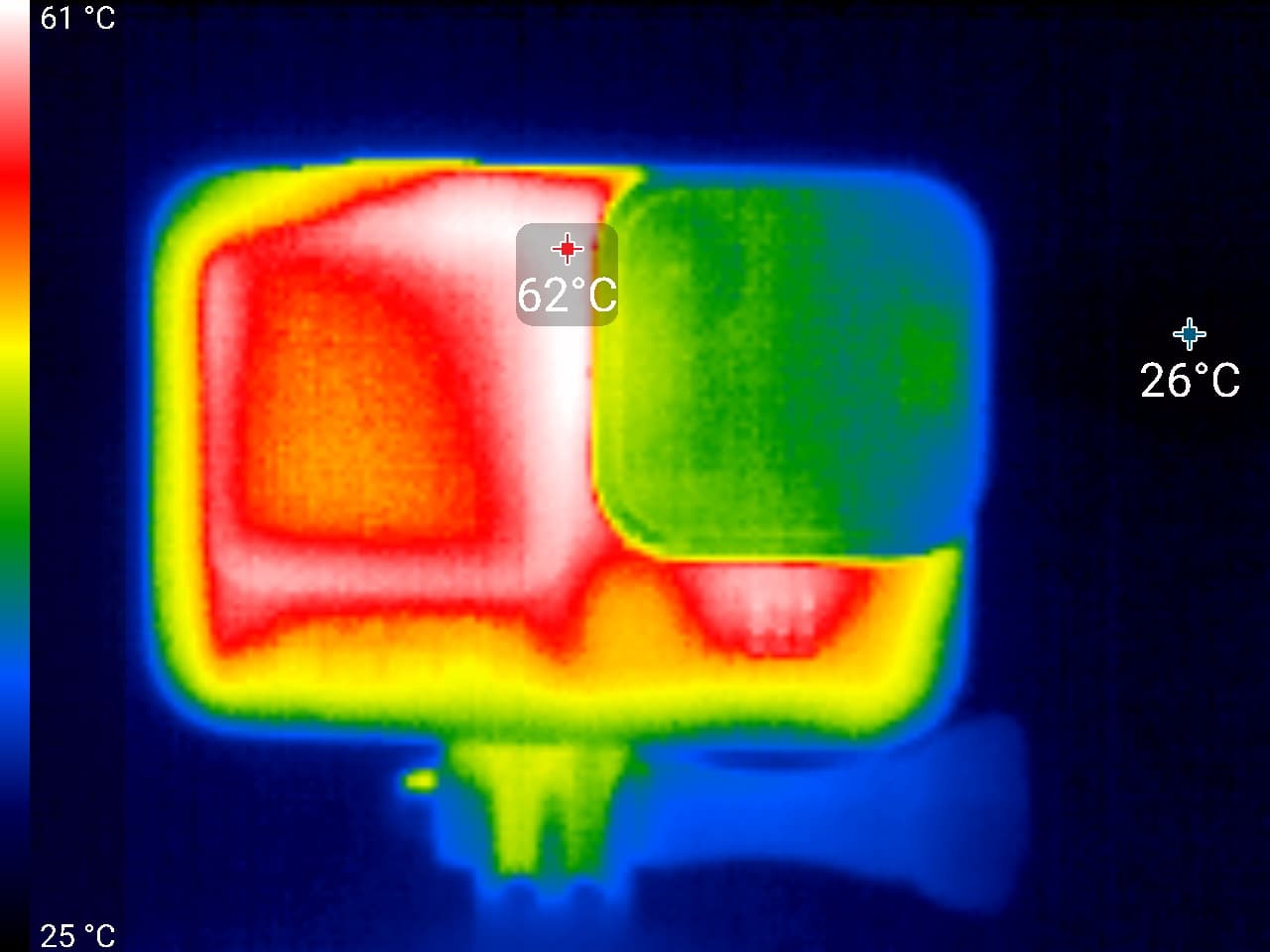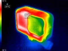 Предыдущая модель нагревалась поменьше. Незначительно, но все же. В 10-й модели температура некоторых участков корпуса достигает 62 °C. Новый процессор — новые температуры? Впрочем, мы несправедливы. Новый процессор GP2 дает больший нагрев просто потому, что способен на большее: благодаря ему вдвое увеличилась частота кадров, а эффективная стабилизация теперь доступна во всех видеорежимах.