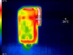 Следующие теплоснимки сделаны за минуту до очередного аварийного выключения камеры. Данные опыты проводились в помещении с температурой около 25 °C. Внимание, всякий ветер в помещении по понятным причинам отсутствует! И это важно!