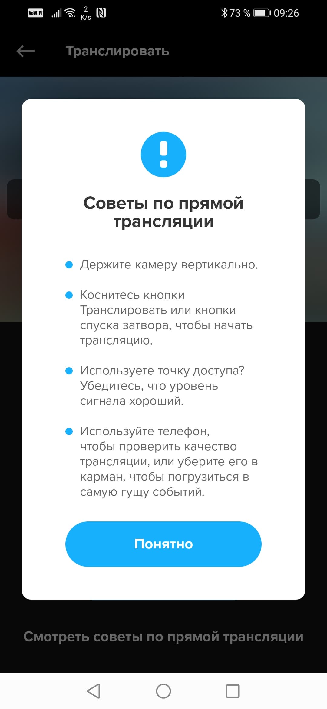 Важно: камера может транслировать видео как через соединение с телефоном (в этом случае она подключится к вашей мобильной точке, активированной в смартфоне), либо подключившись к роутеру напрямую, минуя смартфон. Вообще, трансляция «из коробки» — это редкая и полезнейшая функция для любой камеры.