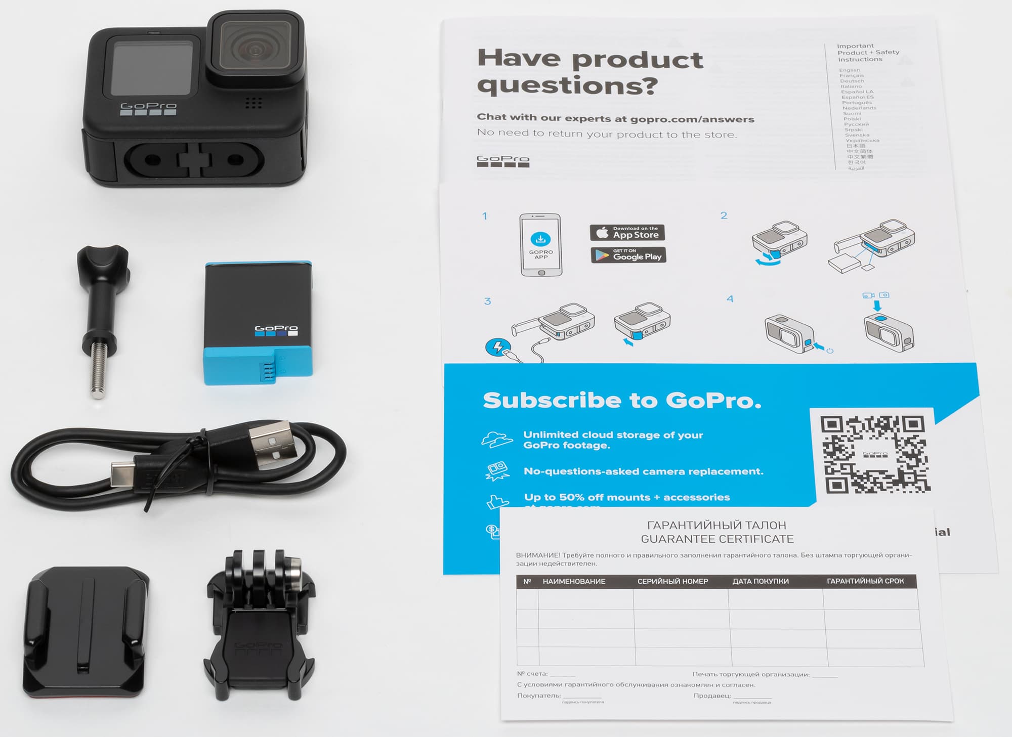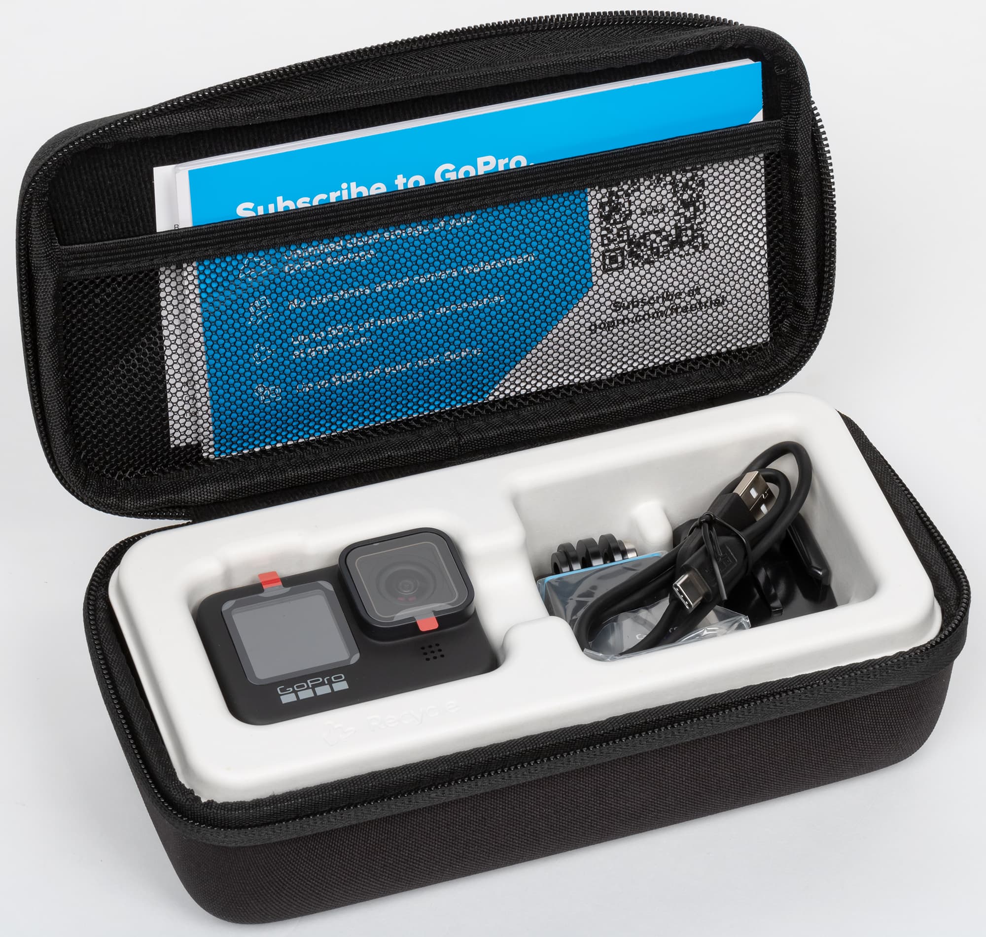 Камера GoPro Hero9 Black (артикул поставки CHDHX-901-RW) комплектуется скромным набором аксессуаров.
