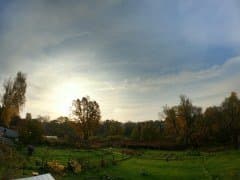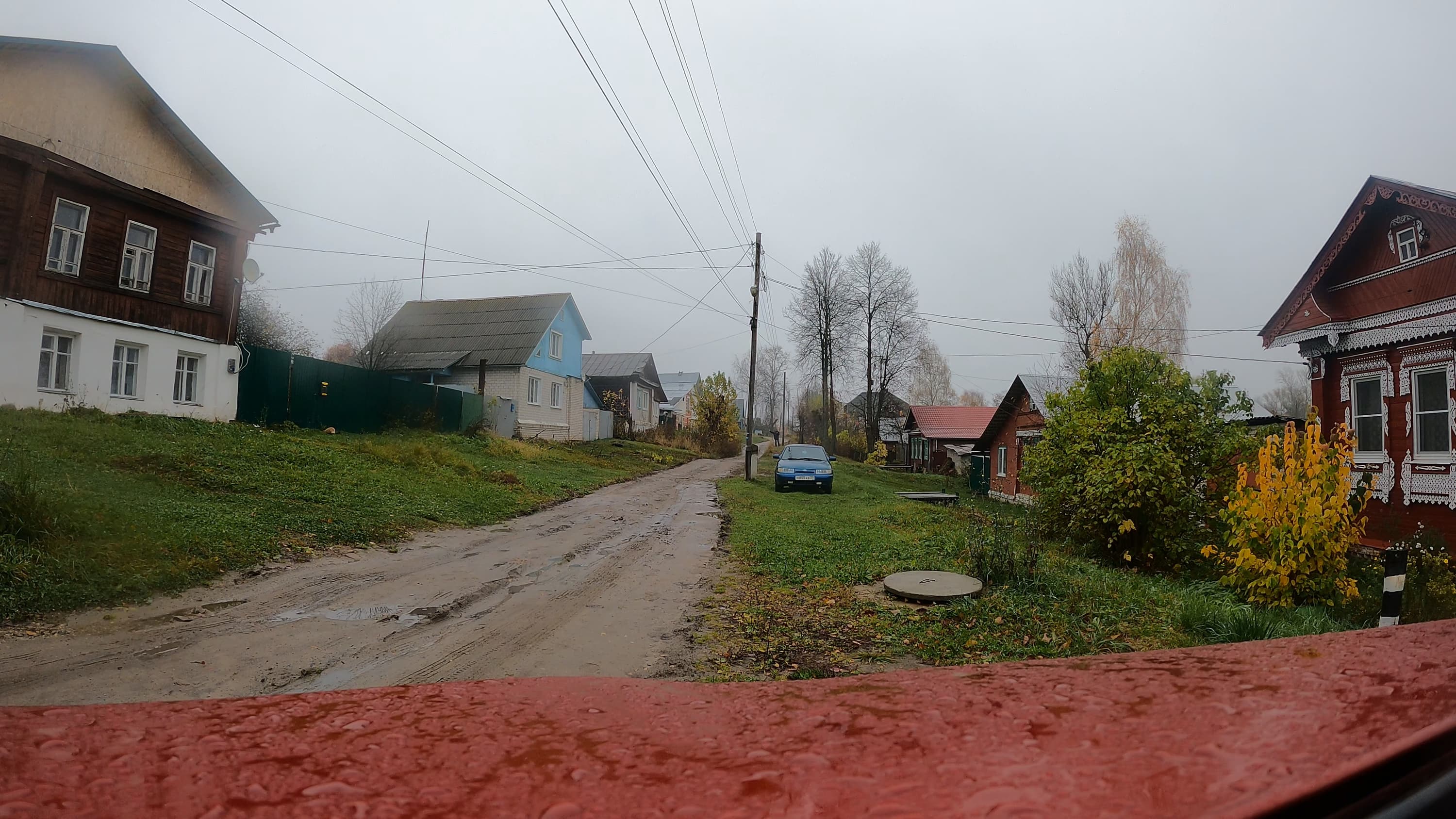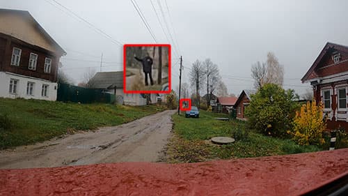 Не может такого быть! Повторим эксперимент «в полях». Это, конечно, не совсем поля, цивилизация давно пришла в деревню и здесь имеется как минимум десяток точек Wi-Fi. Однако они совершенно не помешали камере показать, на что способен ее адаптер. 70 метров! Да, именно с расстояния в 70 метров оператор скомандовал включить запись, камера его услышала и включила. Вот он, оператор, рукой машет. Если присмотреться.