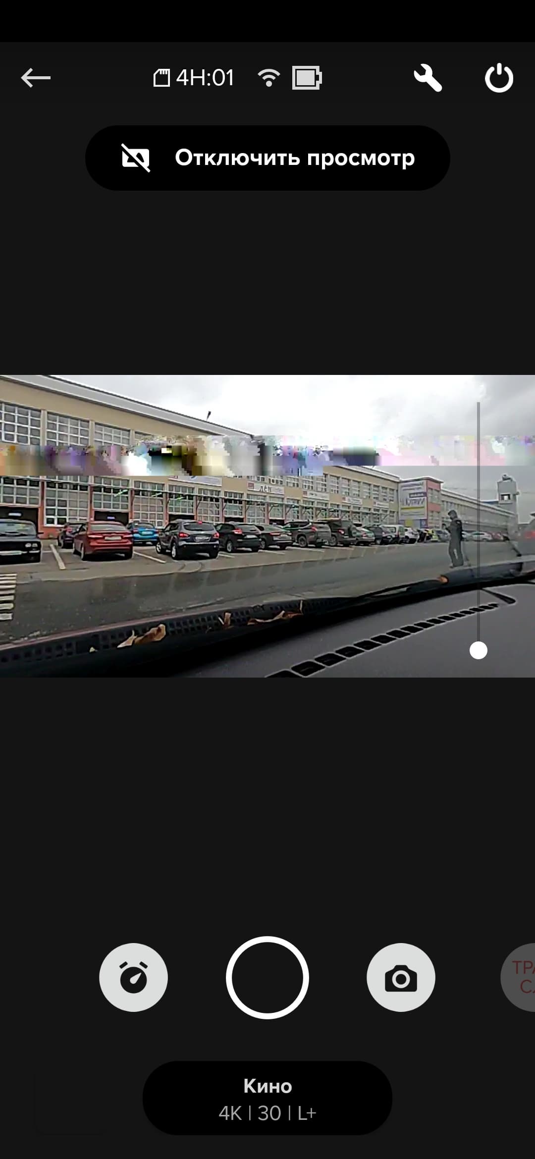 Первая попытка измерить максимальную дистанцию производилась в оживленном месте (стоянка торгового центра) при наличии множества радиосетей. Также между камерой и смартфоном имелось препятствие — лобовое стекло автомобиля. В этих условиях уже на расстоянии 10 метров от камеры качество трансляции падает, что выражается в появлении фризов, пропусков кадров. Стоит же отойти еще буквально на два метра, и картинка начинает искажаться помехами. А на расстоянии в 15 метров кадр замирает, и камера перестает слушаться команд.