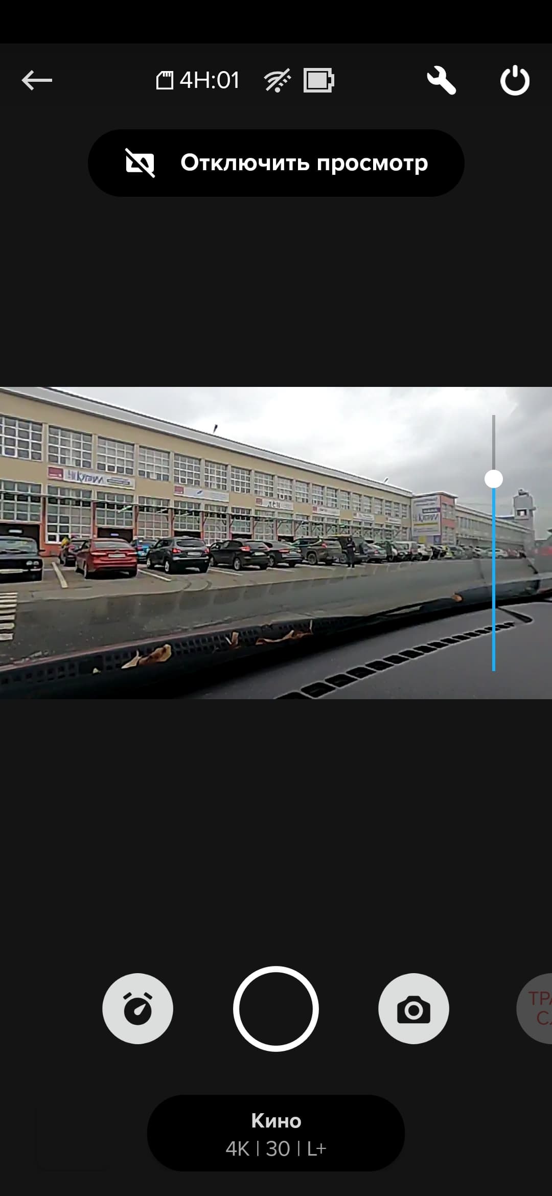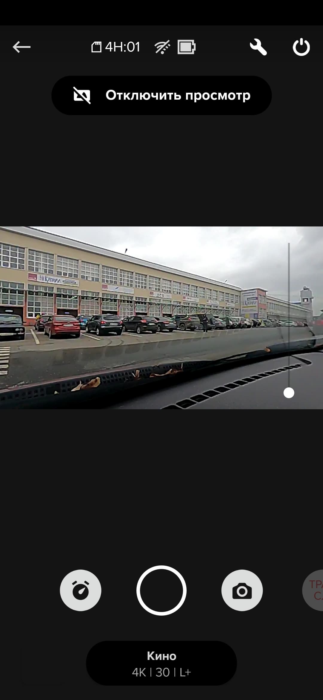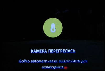 Перед аварийным выключением камера пищит и в течение доли секунды на экране отображается какое-то предупреждение, которое не успеваешь рассмотреть. Но теперь мы были во всеоружии и заранее установили другую камеру, которая записывала экран подопытной GoPro. Вот о чем сообщает перегретый гаджет.