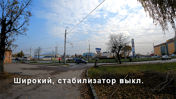 Бесподобно. И никакие внешние устройства теперь совершенно не требуются. Причем мы вовсе не старались удерживать камеру на одном уровне — в видео, где стабилизатор отключен, это четко наблюдается. Что касается последнего, третьего режима, самого мощного — думается, он тут не нужен. Ведь уже на втором режиме плавность выше всяких похвал.