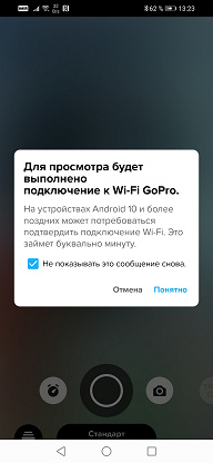 К сожалению, прежние недостатки, отмеченные в обзоре Hero8, остались на месте. Речь о ненадежном, хрупком Wi-Fi-соединении камеры со смартфоном (к Bluetooth претензий нет). Если во время сеанса связи с камерой вы переключитесь на другое приложение или даже просто ответите на входящий звонок, то Wi-Fi-связь с камерой разорвется. Вернувшись в GoPro App, придется вновь устанавливать подключение. А это может оказаться невозможно по каким-то причинам. Для восстановления видеотрансляции нам приходилось перезагружать приложение, смартфон (Honor 8X) и даже камеру. Возможно, аналогичное приложение для iOS ведет себя иначе и не страдает таким недостатком.