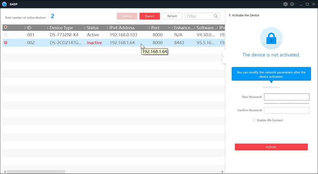 Но мы забежали вперед. Прежде всего требуется объединить имеющиеся устройства в одну слаженную систему. Существует несколько способов это сделать, но мы использовали быстрый. Быстроту и простоту подключения обеспечивает фирменная программка, сетевой сканер. Он отыскивает в локальной сети «родные» устройства. Проблема заключается в том, что в настройках камер и регистратора по умолчанию может быть отключен DHCP (так оно и было в нашем случае). И если ваша локалка настроена на другую подсеть, вы не сможете зайти на эти устройства с компьютера, поскольку камеры и регистратор не получат от маршрутизатора нужный IP-адрес. К примеру, наша сеть давным-давно была настроена на «нулевой» сегмент, то есть третья циферка в IP-адресе — ноль, а не единица, как это выставлено по умолчанию в устройствах Hikvision. Но программе SADP все это нипочем. Даже работая на компьютере из имеющейся локальной сети, приложение не только «видит» включенные устройства с адресом из другой подсети, но и позволяет управлять этими устройствами. Конечно, «управлять» — громко сказано. Тут разрешается лишь активировать найденные устройства и включить в каждом из них DHCP. А нам большего и не требуется.