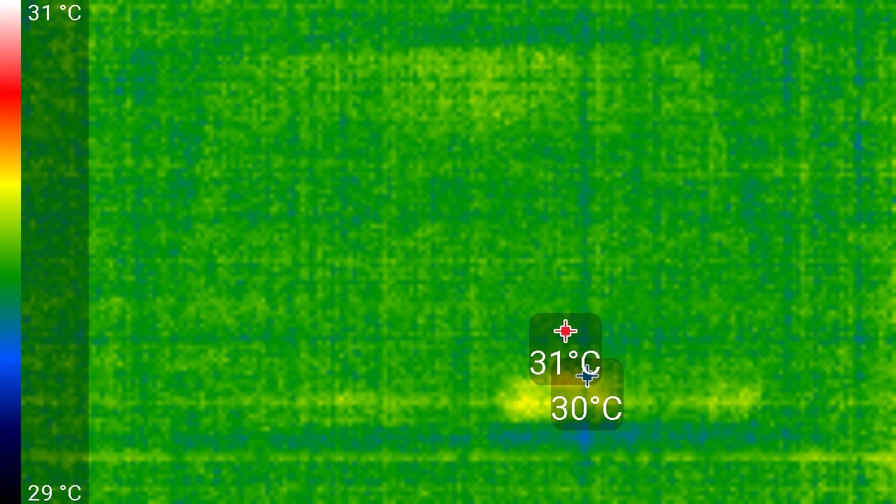 С регистратором получилось совсем забавно. Попробуйте отыскать прибор на этом теплоснимке. Не видите? А он есть.
