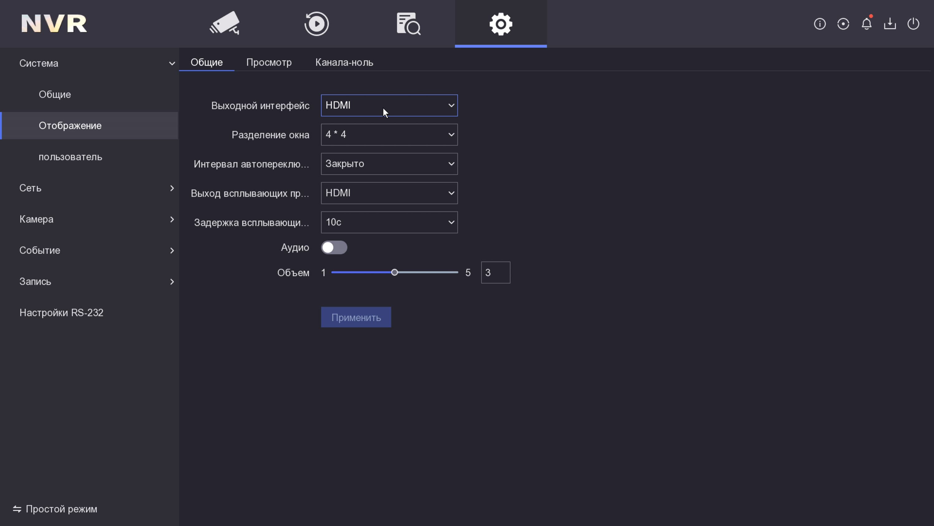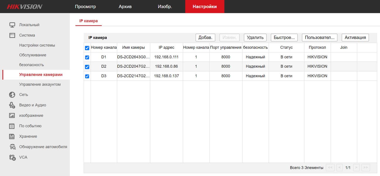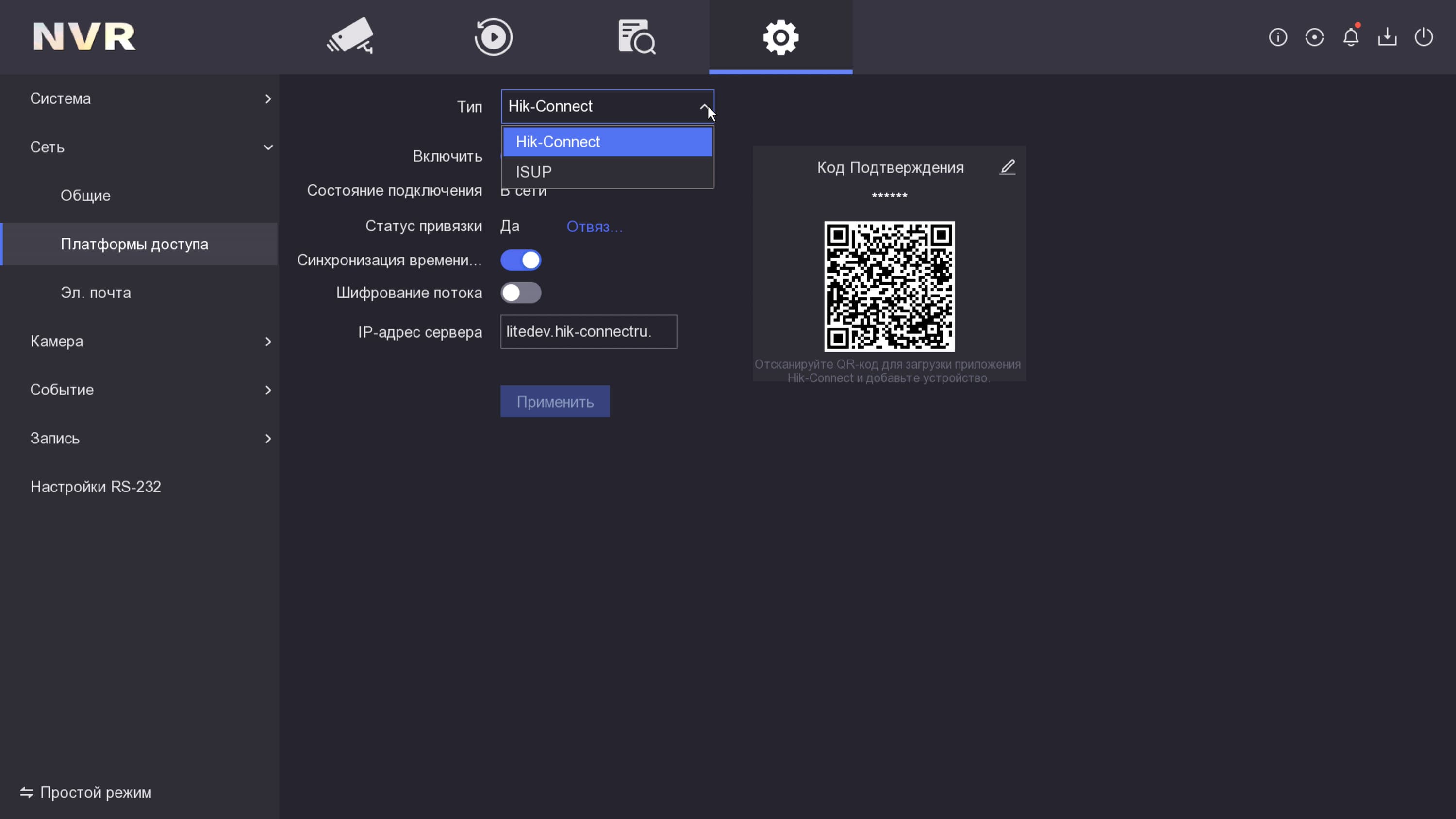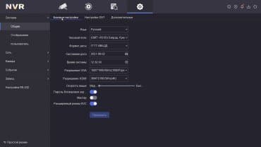 Здесь доступны те же самые настройки, которые предоставляет регистратор через свой видео-интерфейс: системные, сетевые и т. д., включая возможность подключения и настройки камер.