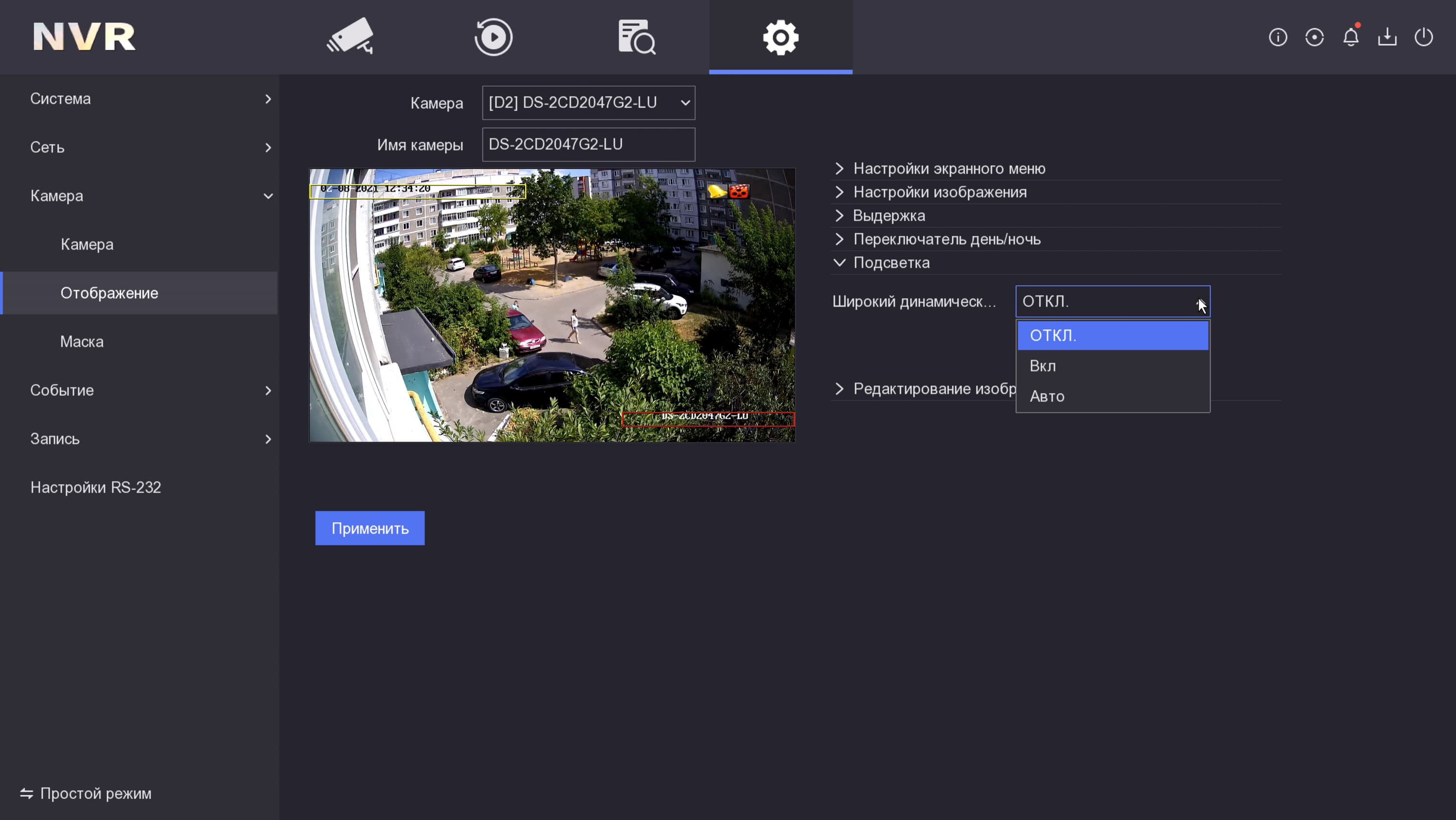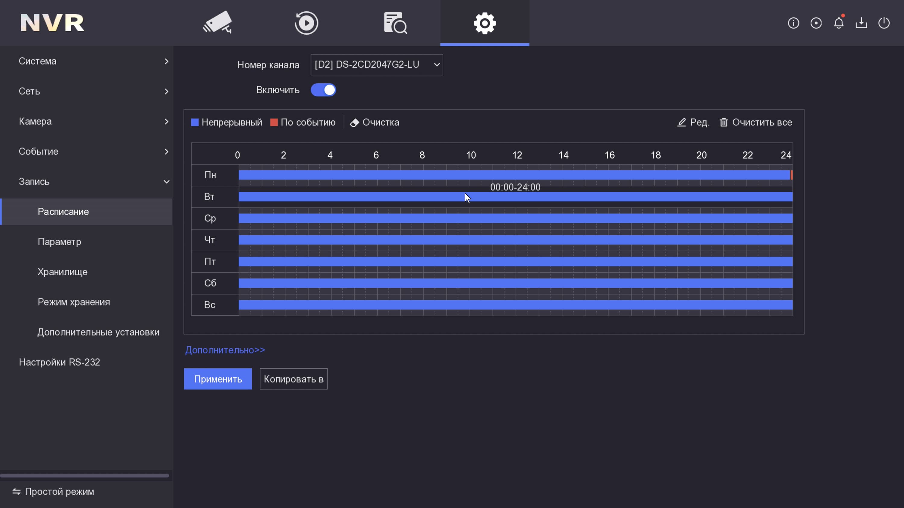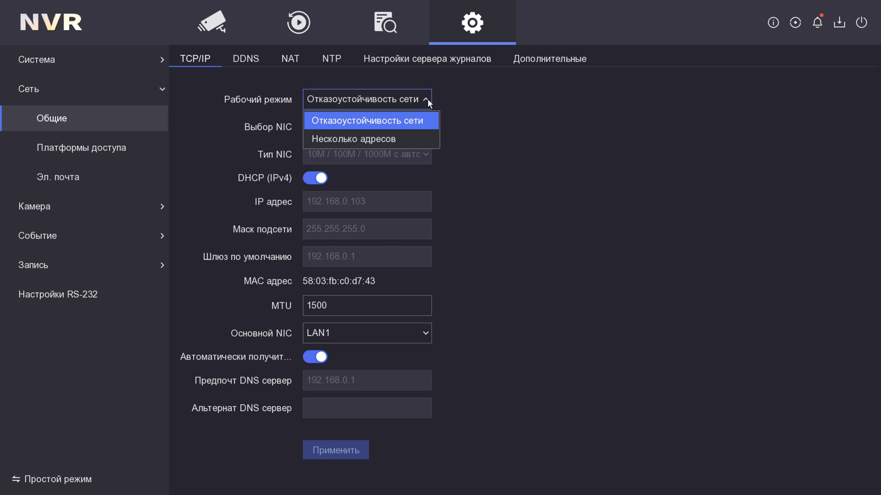 Здесь доступны те же самые настройки, которые предоставляет регистратор через свой видео-интерфейс: системные, сетевые и т. д., включая возможность подключения и настройки камер.