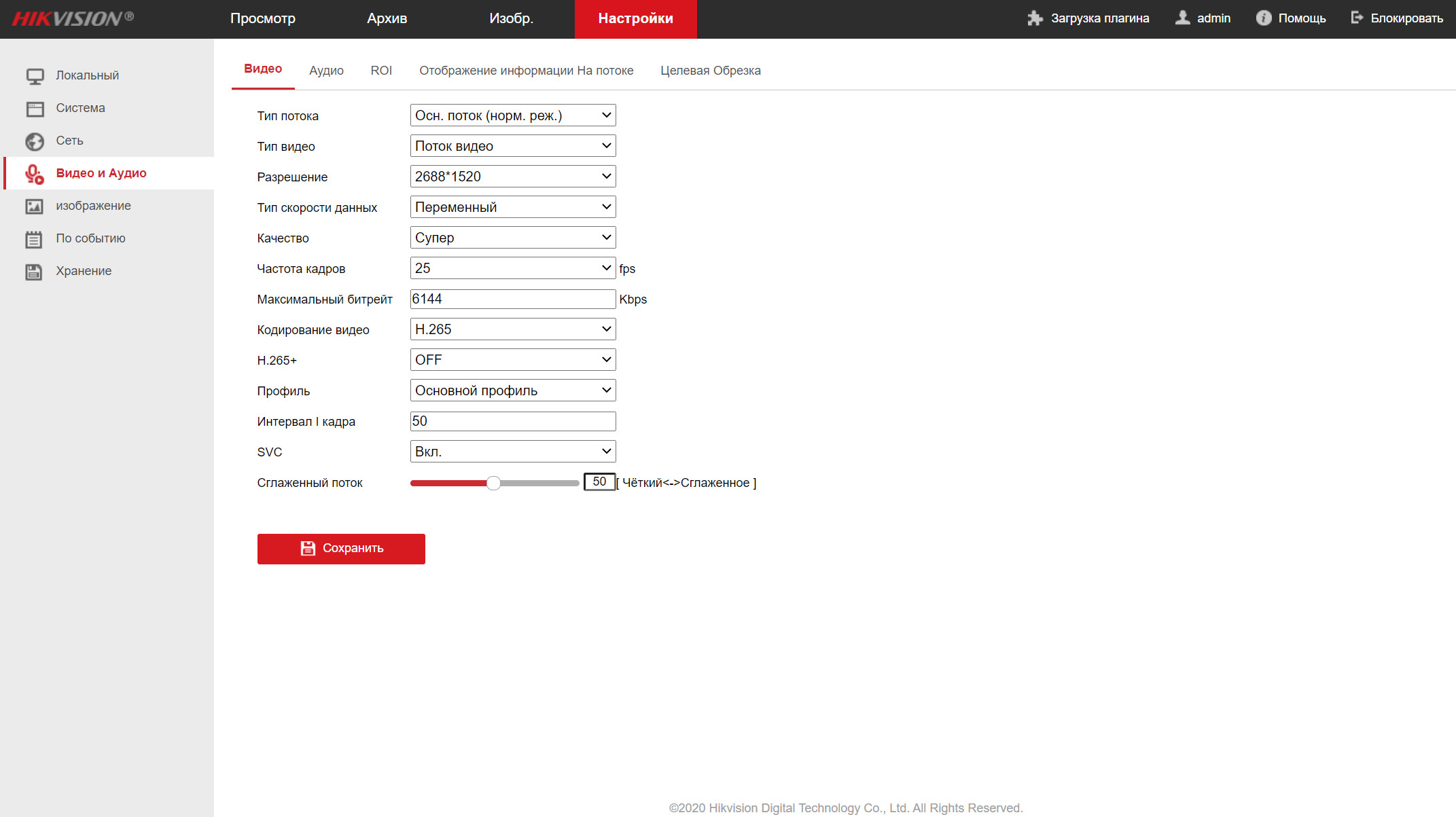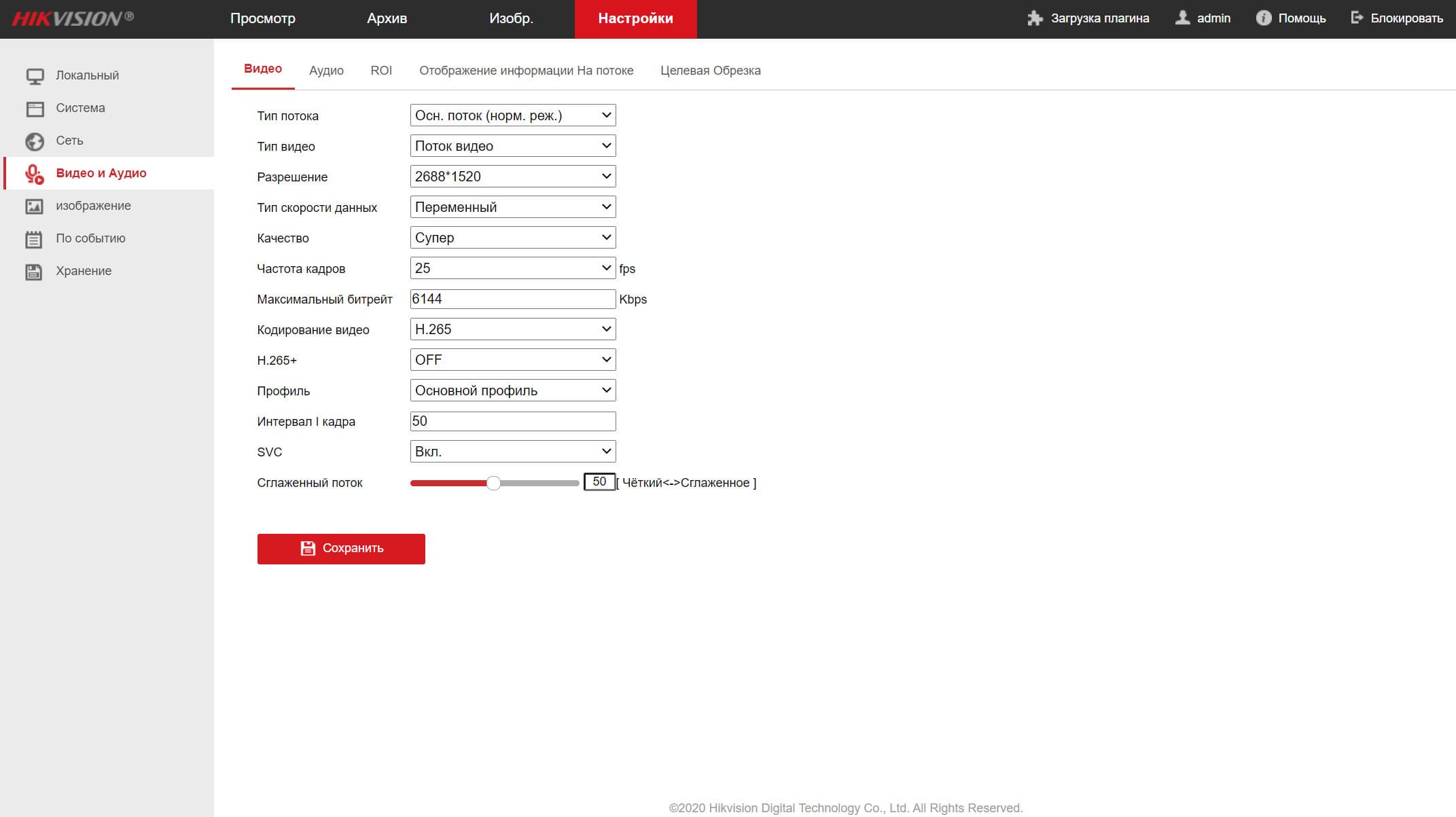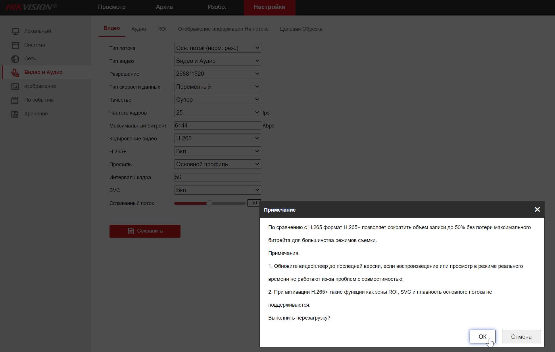 Максимальный размер, с которым рассматриваемые камеры могут записывать видео, составляет 2688×1520 пикселей при частоте 25 кадров в секунду. В настройках камер имеется возможность настроить качество сжатия и регулировать битрейт. Максимальный уровень битрейта для потока 2688×1520 составляет 8192 Кбит/с. При переключении в алгоритм + в настройках кодирования появляется дополнительная строка, Максимальный средний битрейт. Именно на этот битрейт ориентируется камера при кодировании статики, отсюда получается почти двукратная экономия. Кстати, после переключения алгоритма сжатия с обычного на + камере требуется перезагрузка.