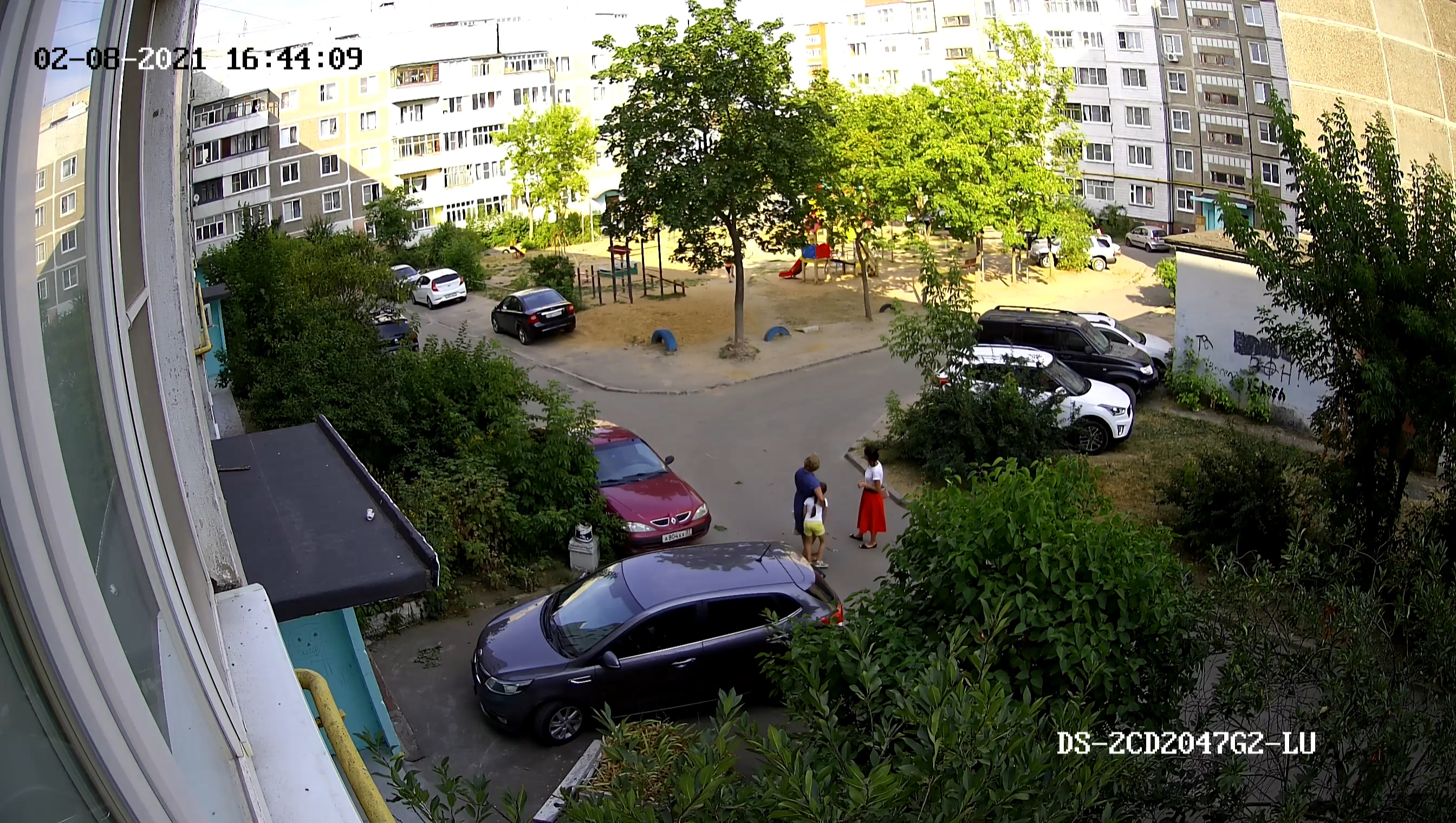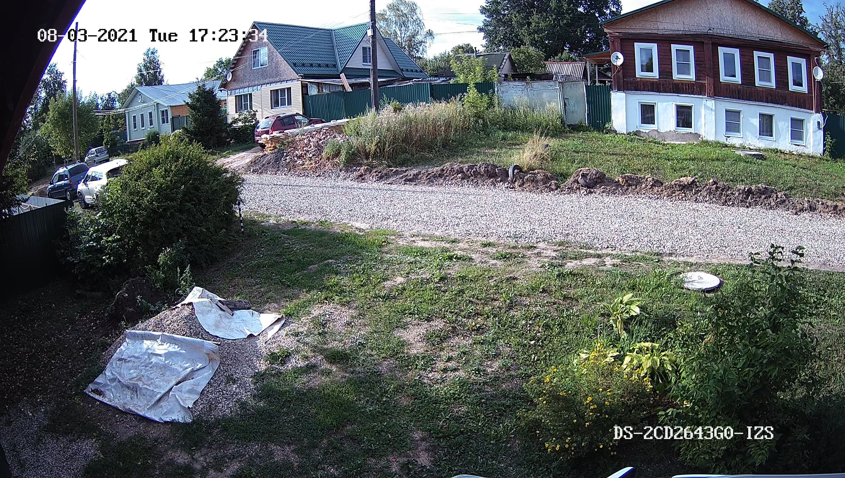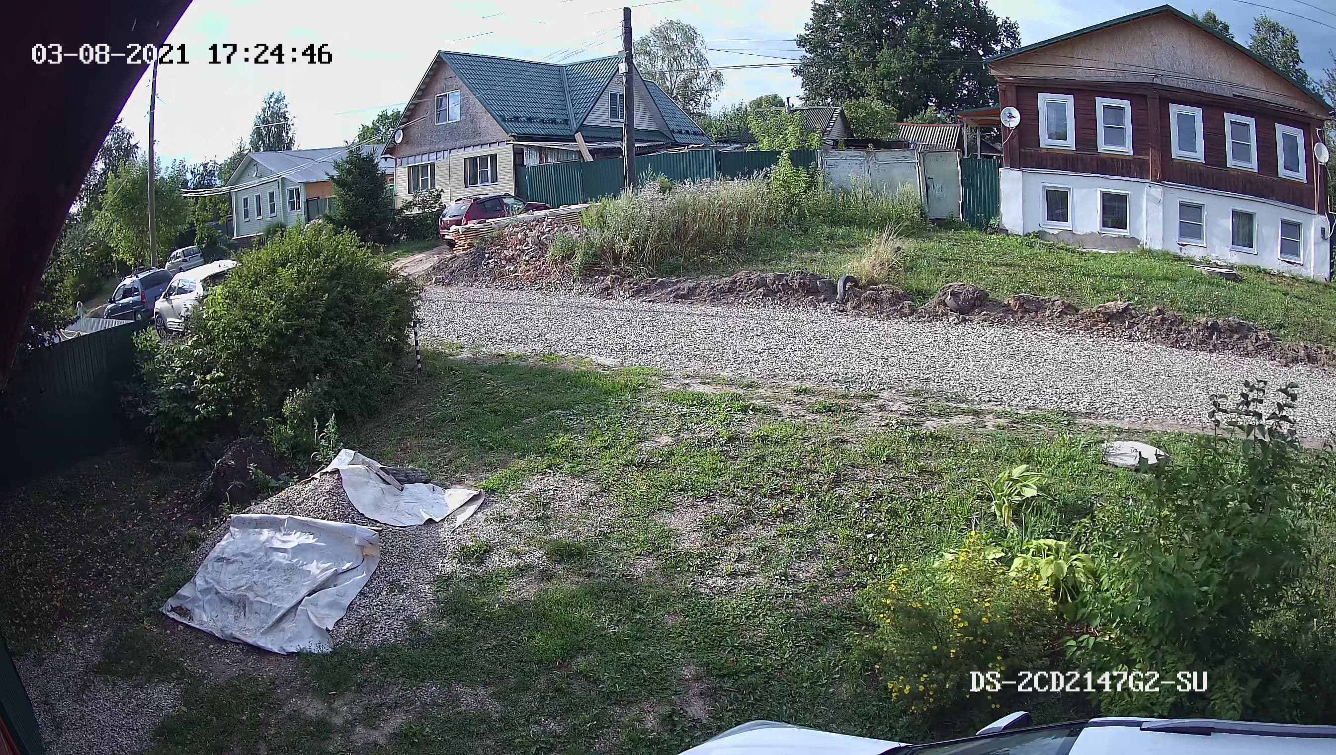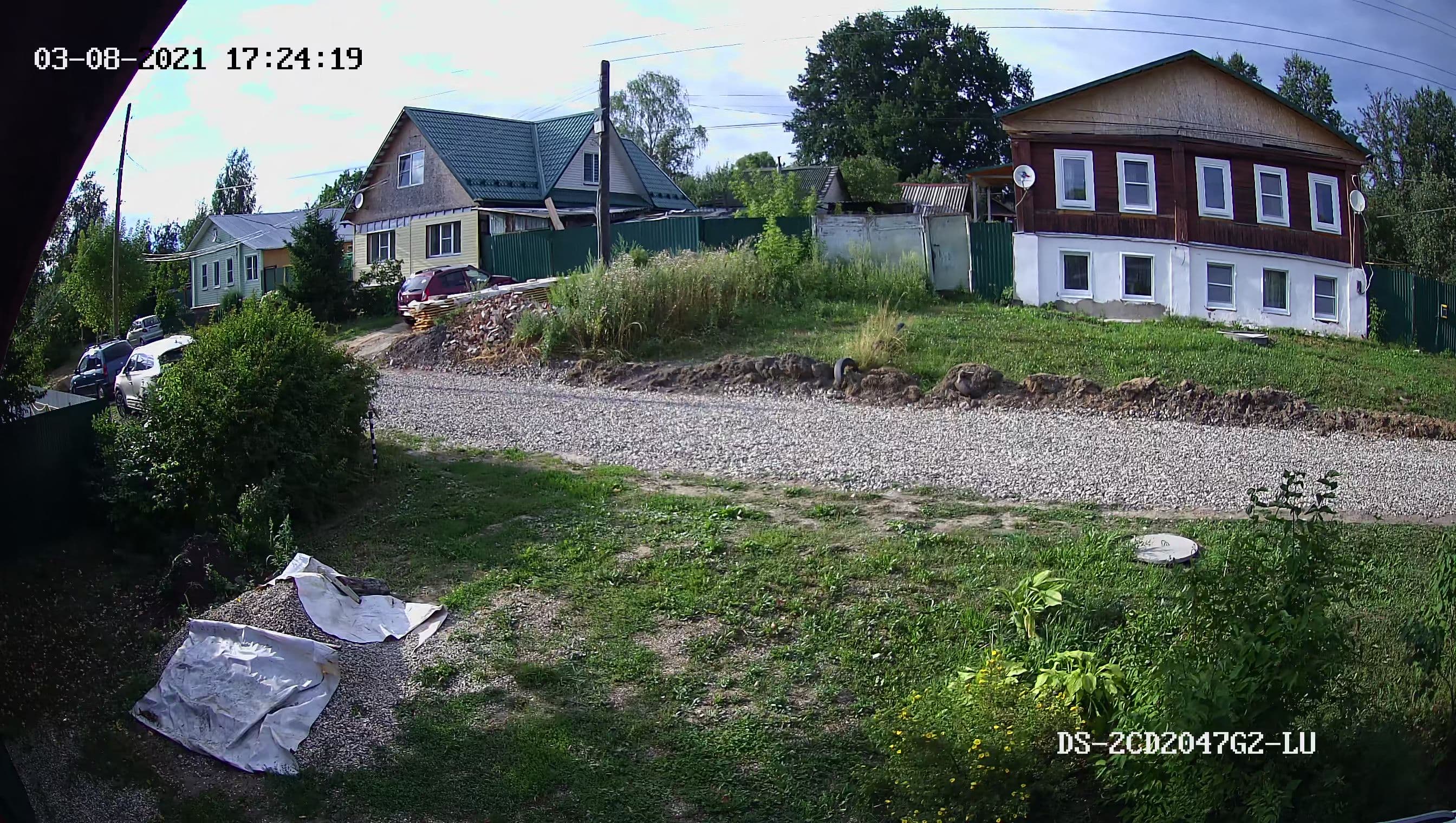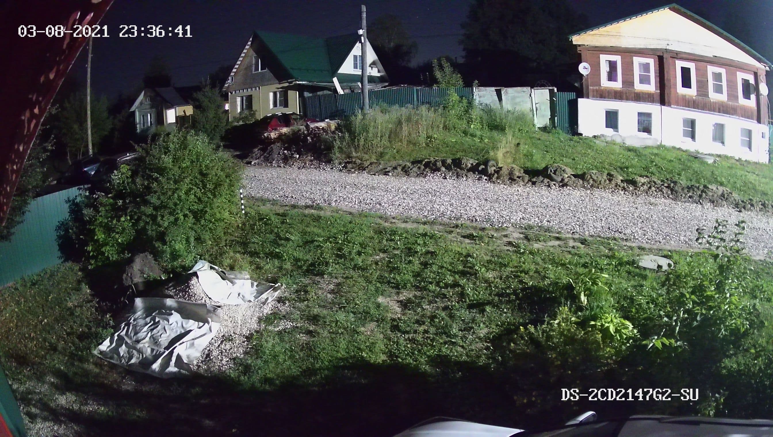 Но достаточно теории. Далее будут приведены сравнительные стоп-кадры, полученные камерами в разное время суток в разных режимах работы, дневном и ночном. Отметим: эти режимы в каждой камере реализованы тоже по-разному. Так, в камере DS-2CD2047G2-LU ночной режим подразумевает подсветку белыми светодиодами (но это необязательно, ее можно отключить). У купольной камеры DS-2CD2147G2-SU нет вообще никакой подсветки, поэтому в режиме Ночь она попросту меняет параметры экспозиции, картинка становится мягче, неконтрастней. И, наконец, камера DS-2CD2643G0-IZS, имея традиционную инфракрасную подсветку, в режиме Ночь использует ее, как единственный способ разглядеть в темноте хоть что-то. Кстати, пусть читателя не смущает раннее время, отпечатанное в кадрах. В это время здесь, чуть севернее Москвы, небо уже абсолютно темное, без намека на закат.