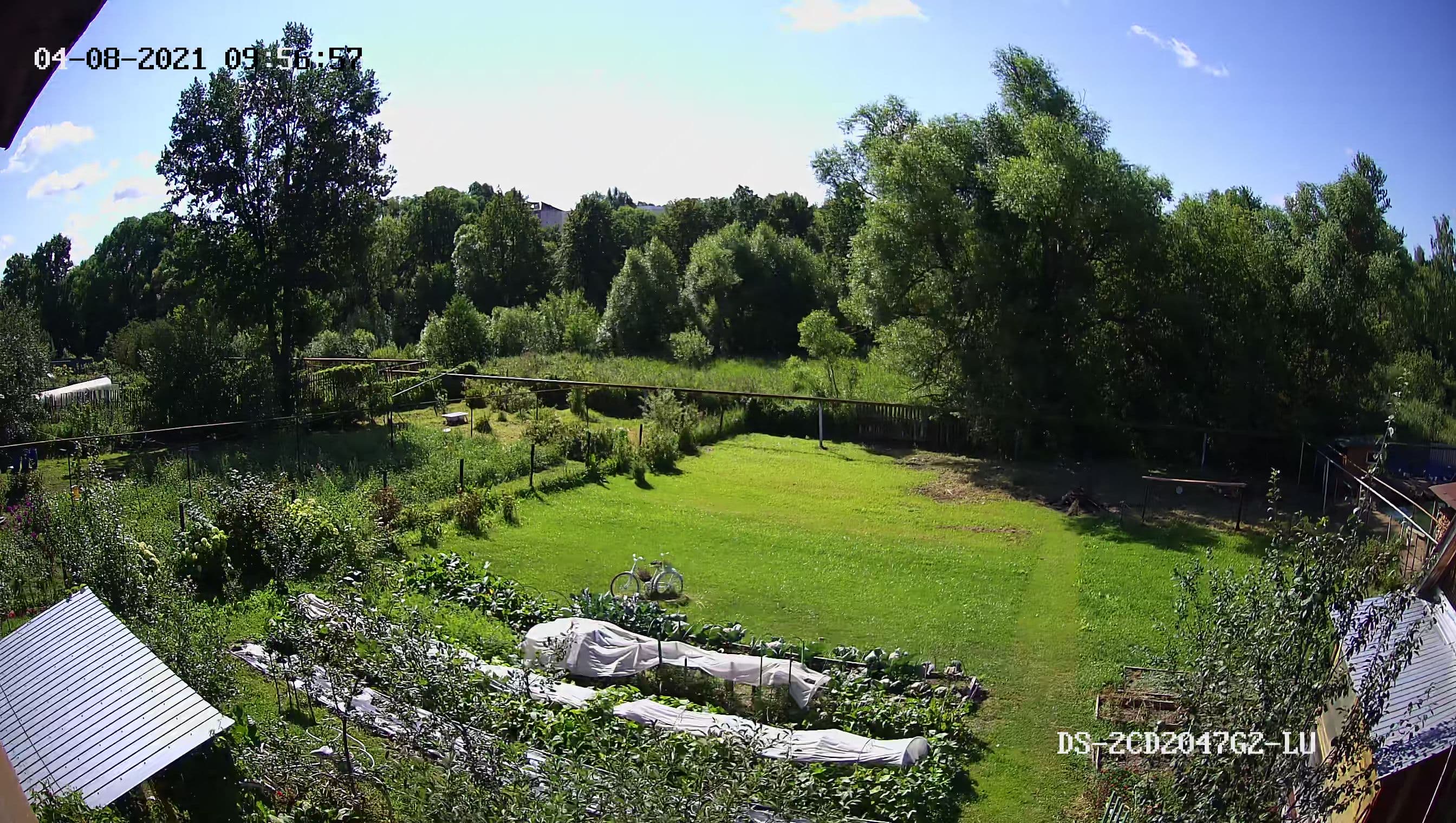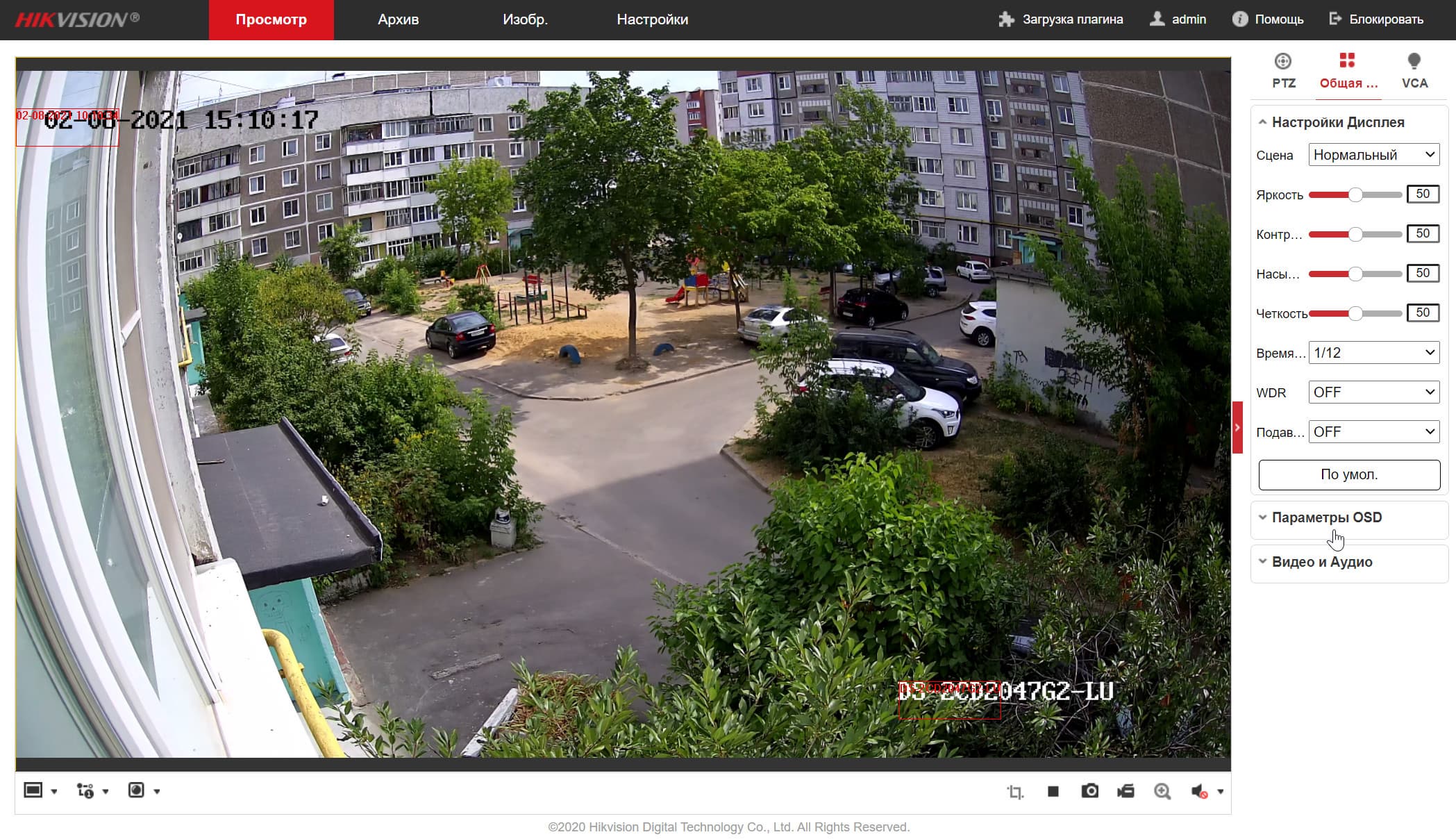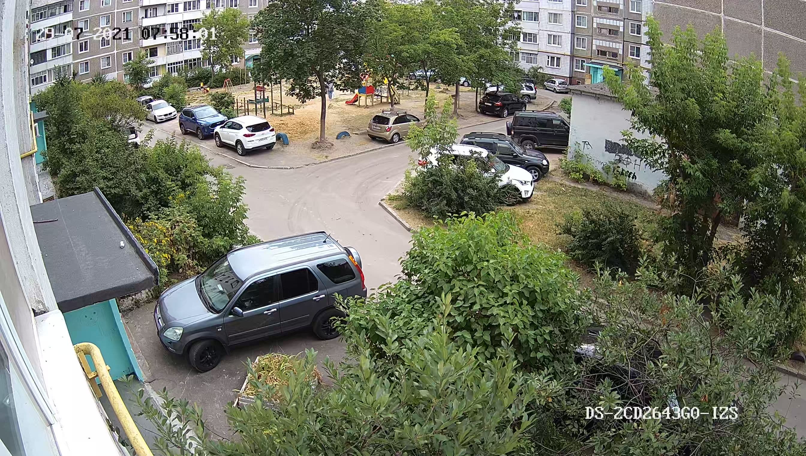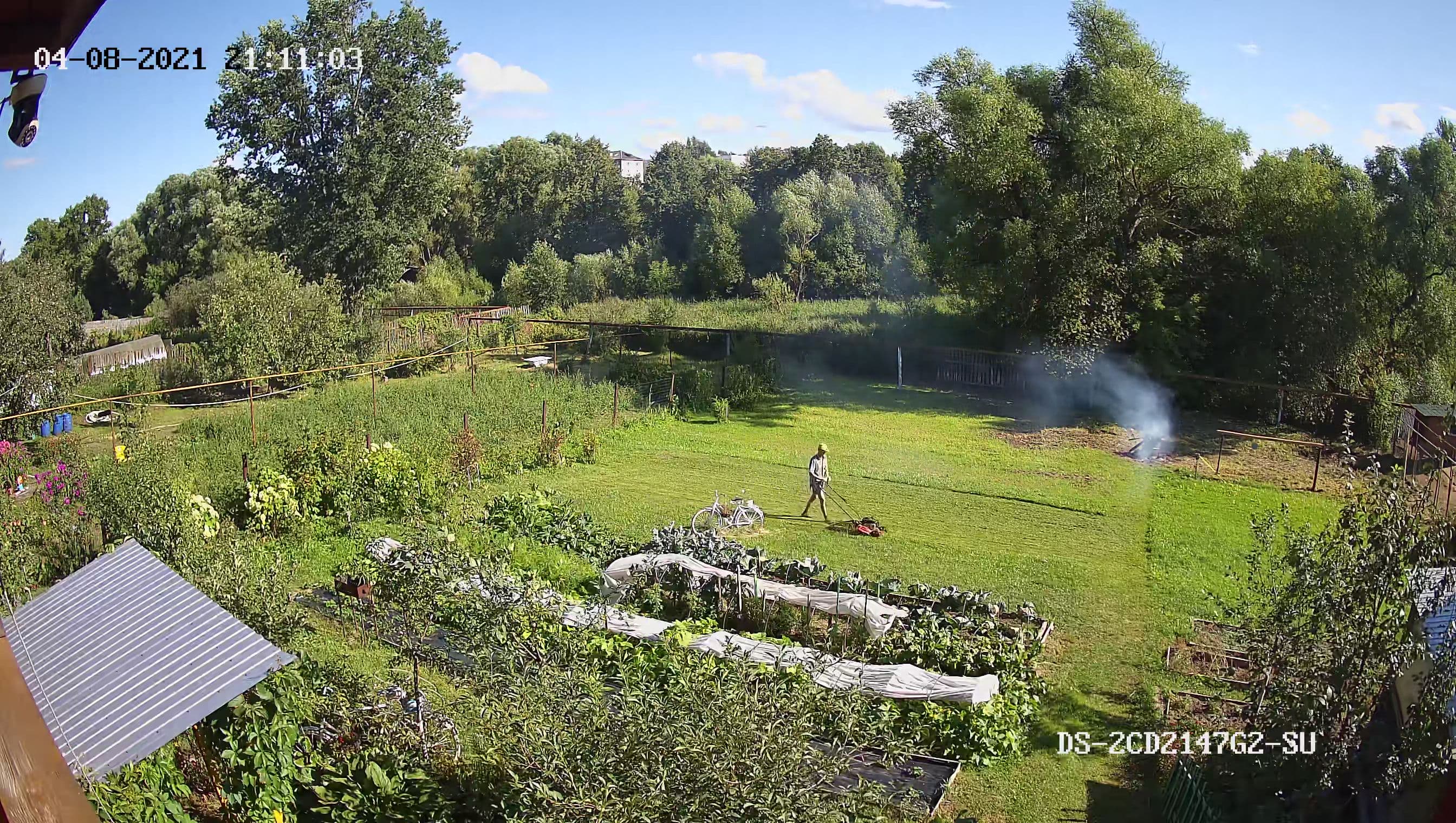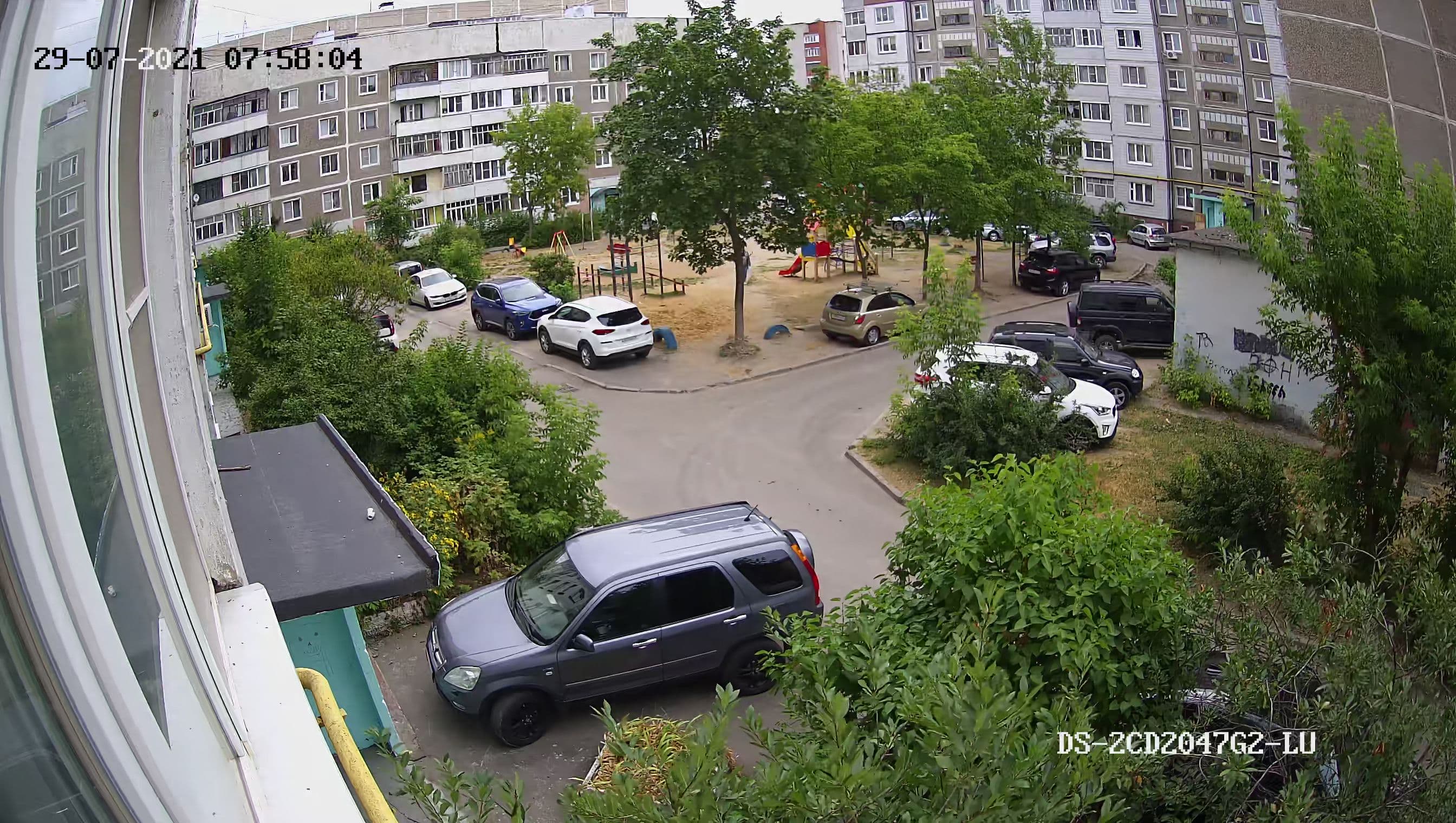 Но достаточно теории. Далее будут приведены сравнительные стоп-кадры, полученные камерами в разное время суток в разных режимах работы, дневном и ночном. Отметим: эти режимы в каждой камере реализованы тоже по-разному. Так, в камере DS-2CD2047G2-LU ночной режим подразумевает подсветку белыми светодиодами (но это необязательно, ее можно отключить). У купольной камеры DS-2CD2147G2-SU нет вообще никакой подсветки, поэтому в режиме Ночь она попросту меняет параметры экспозиции, картинка становится мягче, неконтрастней. И, наконец, камера DS-2CD2643G0-IZS, имея традиционную инфракрасную подсветку, в режиме Ночь использует ее, как единственный способ разглядеть в темноте хоть что-то. Кстати, пусть читателя не смущает раннее время, отпечатанное в кадрах. В это время здесь, чуть севернее Москвы, небо уже абсолютно темное, без намека на закат.