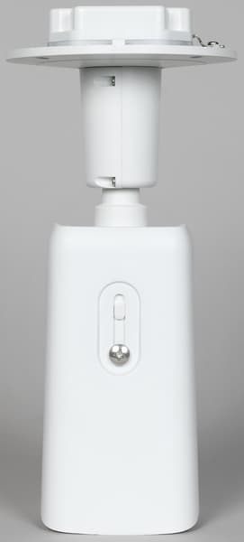 Необычность начинается с крепежной площадки. Она не оканчивается «блинчиком» с отверстиями для винтов, а имеет продолжение корпуса, в который вмонтированы служебные разъемы и интерфейсы. Эта модель снабжена пластиковым козырьком, который можно сдвигать вперед-назад, фиксируя винтом выбранное положение.