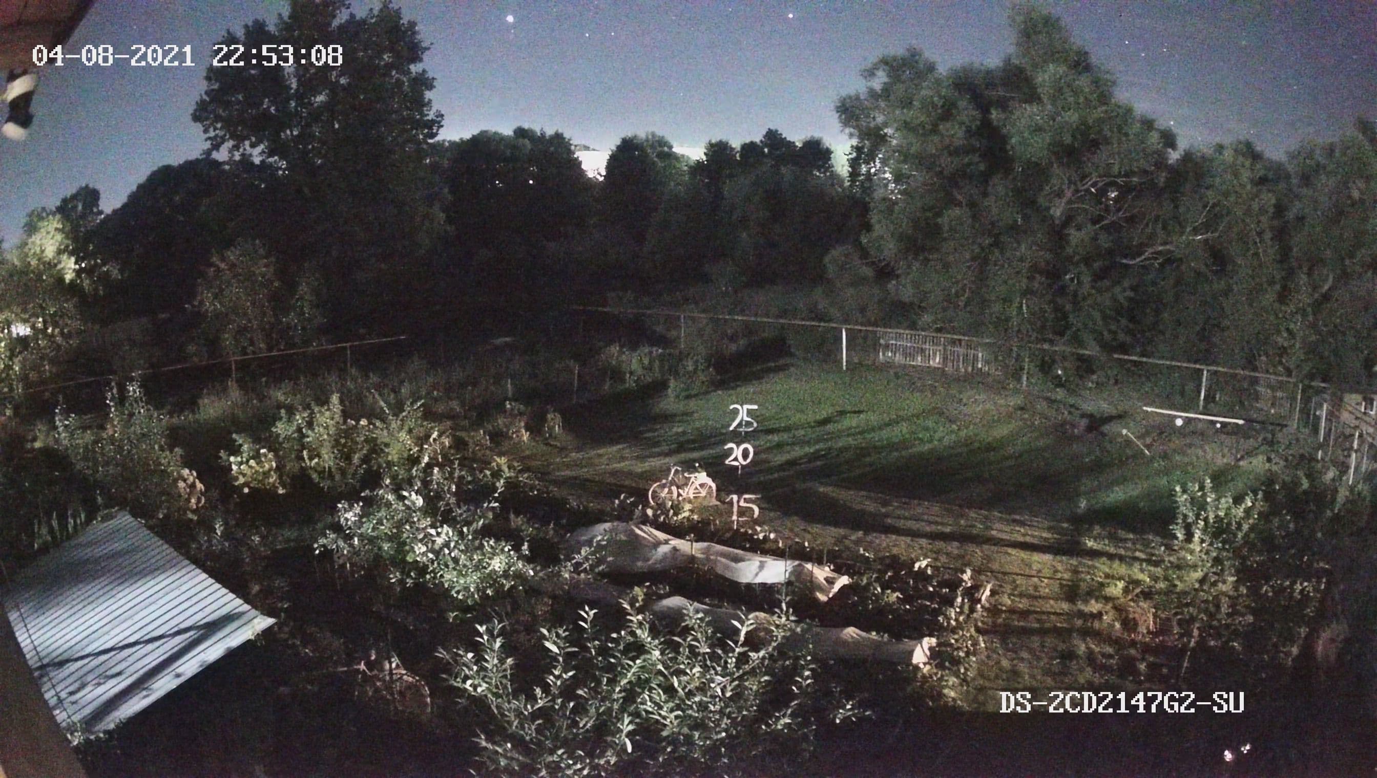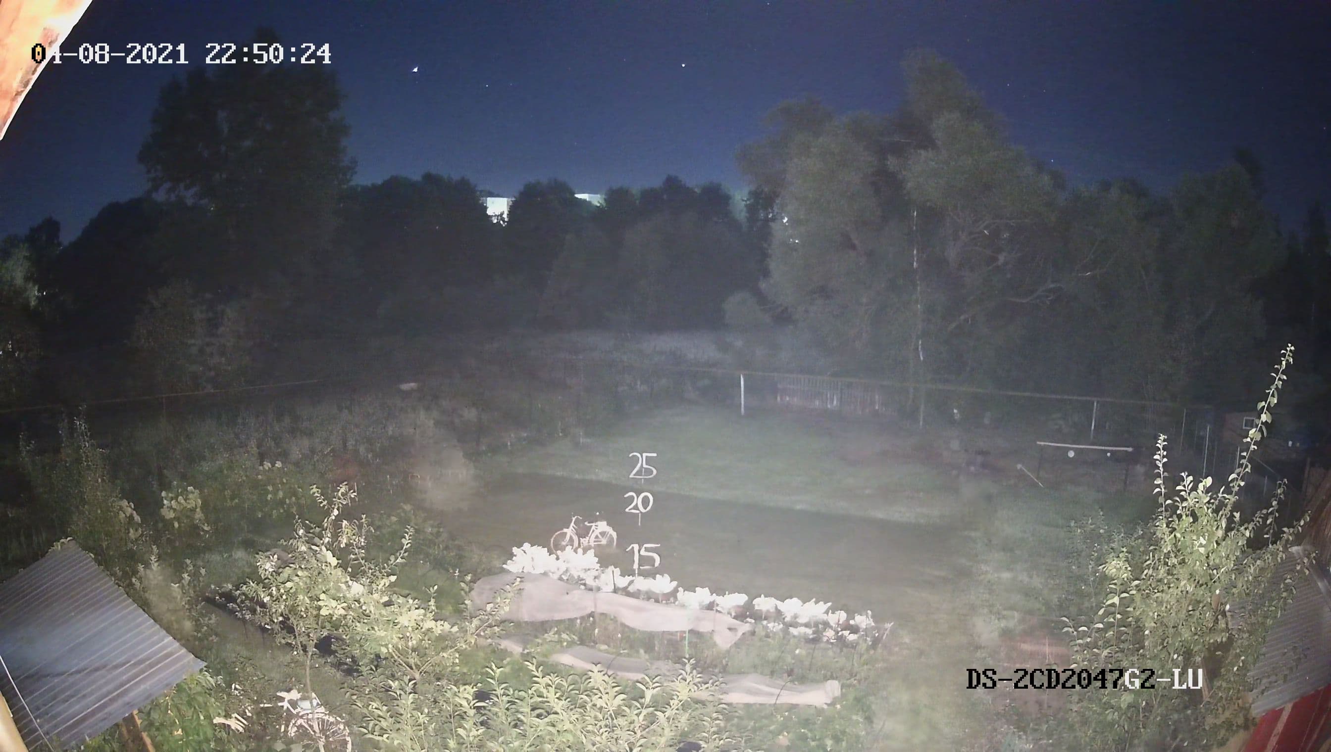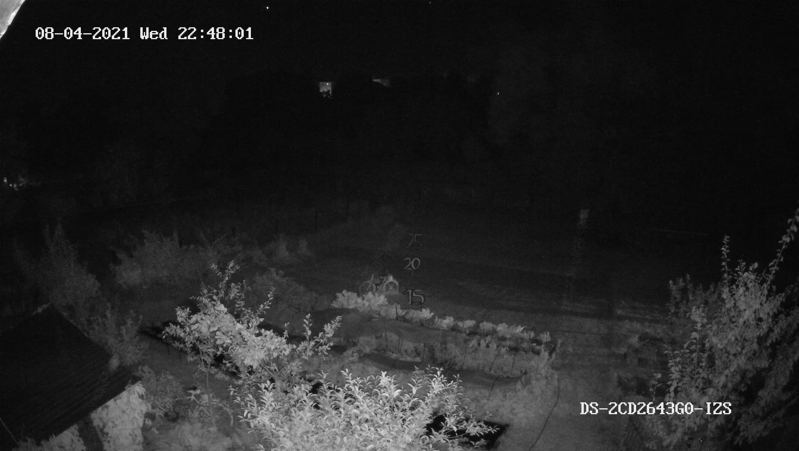 Кстати, цифры, расставленные в центре ночных кадров — настоящие. Они показывают расстояние от камер до этих цифр. В метрах, разумеется. Можно видеть, что инфракрасная подсветка камеры DS-2CD2643G0-IZS уверенно «добивает» до последней цифры 25.
