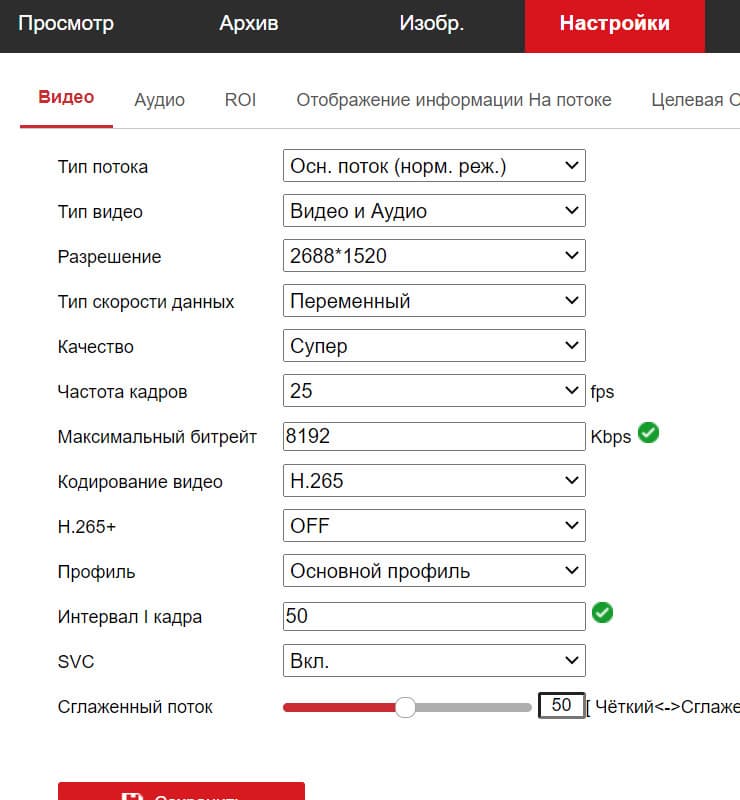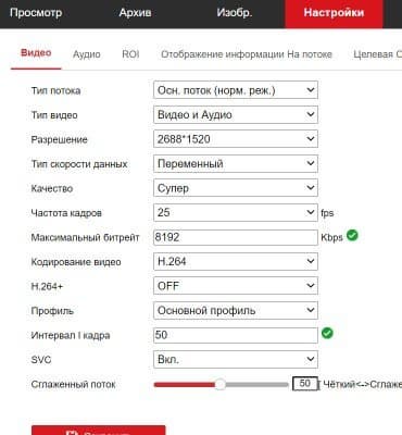 | Разрешение записи | 2 потока видео и аудио, 8 Мп/6 Мп/5 Мп/4 Мп/3 Мп/1080p/UXGA/720p/VGA/4CIF/DCIF/2CIF/CIF/QCIF |