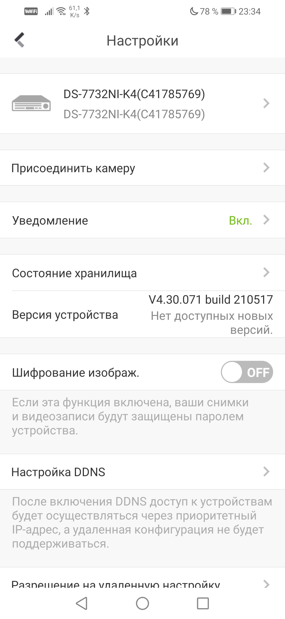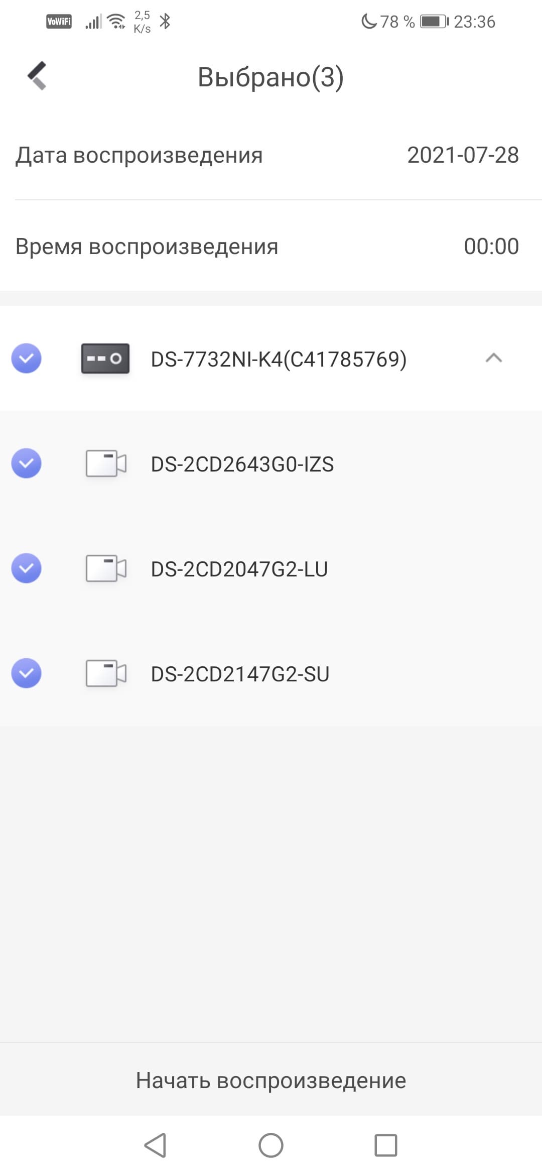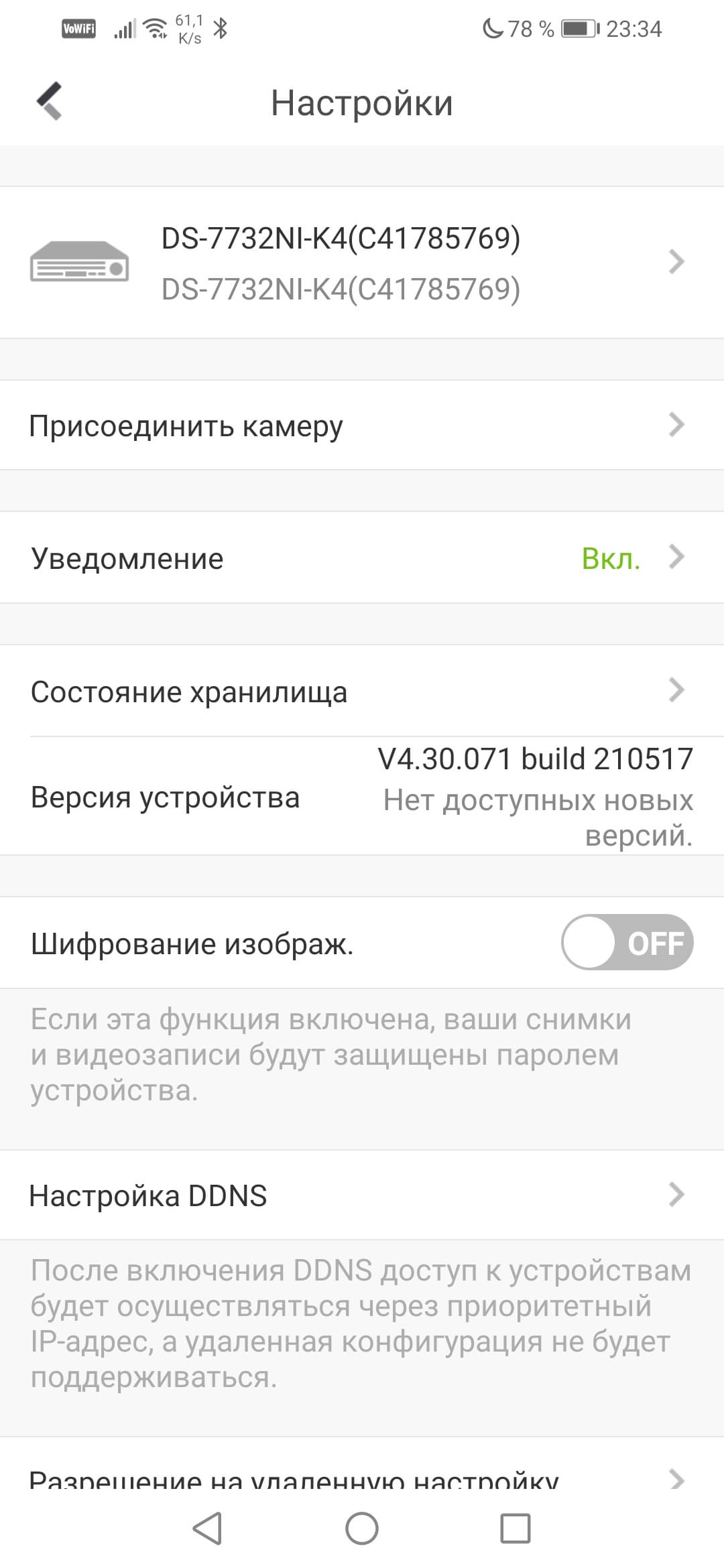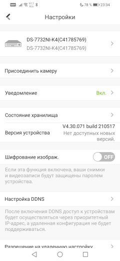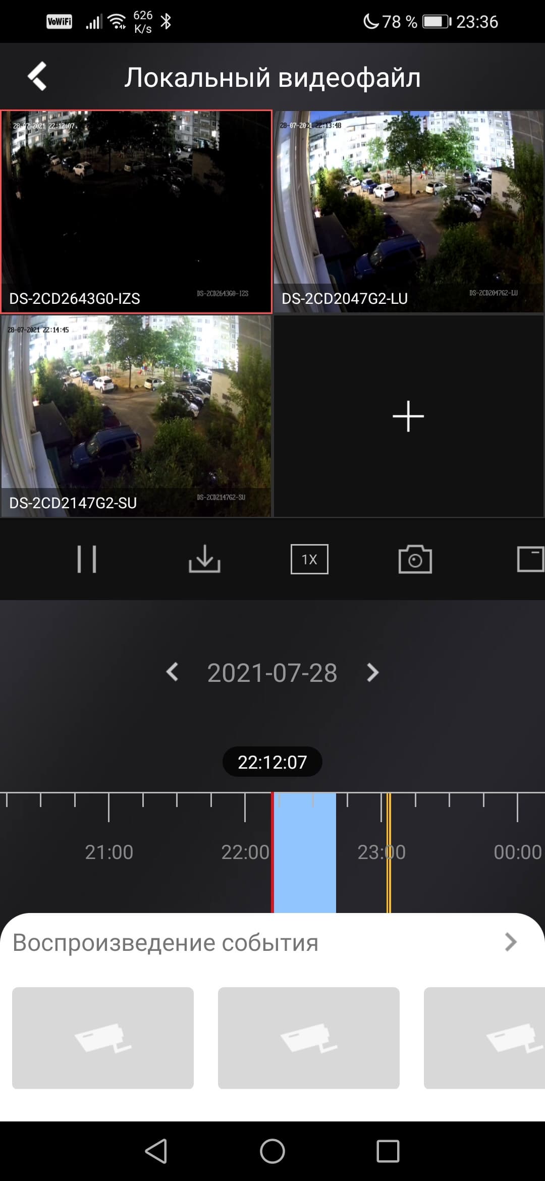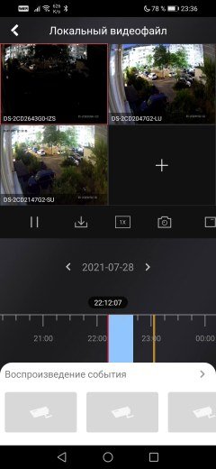 Однако и тут мы получили функциональностью наотмашь. Это большая и приятная неожиданность. Настройки, которые доступны в мобильном приложении Hik-Connect, немногим уступают браузерным. Конечно, они упрощены и направлены на мобильность, но ведь приложение-то мобильное. Несмотря на это, здесь присутствует даже модуль просмотра архива с возможностью поиска событий.