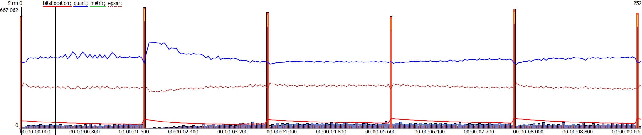 Можно видеть, что при одинаковом качестве сжатия, ролики, закодированные с фирменным алгоритмом Plus, имеют почти вдвое меньший вес. Также очевидно, что снижение объема файла достигается за счет двукратного увеличения интервала между ключевыми кадрами в режиме Plus с одновременным снижением затрат на кодирование промежуточных кадров. Что ж, вполне наглядная демонстрация возможностей технологий получилась.