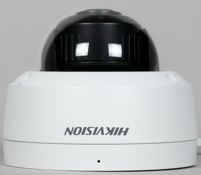 Самой хладнокровной камерой оказалась самая крупная, она сверху. Это модель DS-2CD2643G0-IZS, не имеющая такой сложной электроники и технологии ColorVu. Расположенная пониже пуля DS-2CD2047G2-LU и купол DS-2CD2147G2-SU выглядят чуток погорячее, хотя температуру 35 °C нельзя назвать сколько-нибудь серьезной. И уж тем более угрожающей, даже если учесть дополнительный сторонний нагрев. Лучами солнца, к примеру. Впрочем, белое напыление корпусов камер прекрасно защищает аппараты от нагрева солнечными лучами.