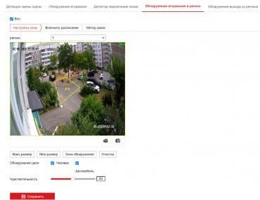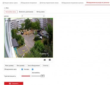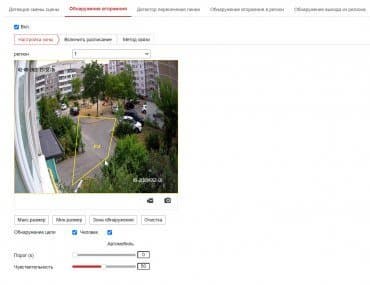 Всего доступно пять отслеживаемых типов событий. Все они могут работать одновременно, это обеспечивает встроенная в камеру мощная математика. При анализе камера распознает тип вторгающихся объектов, разделяя их на человека и автомобиль. Зоны анализа могут быть любой формы, что удобно для исключения ненужных объектов (деревья, стены).