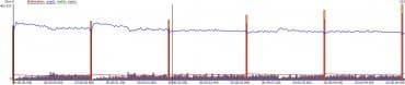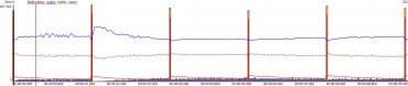 Выдает его чуть заметный силуэт и нагретый участок в районе кнопок управления на лицевой панели. Точно в том месте, к которому от главной платы подходит шлейф из тонких проводков. Вот что принудительная вентиляция делает! Впрочем, как знать, какую температуру мы бы получили, если бы в корпусе работал не один жесткий диск, а все четыре положенных по штатной численности? Хотя, думается, никакие диски не могут привести этот регистратор к перегреву. Будь их хоть десяток.