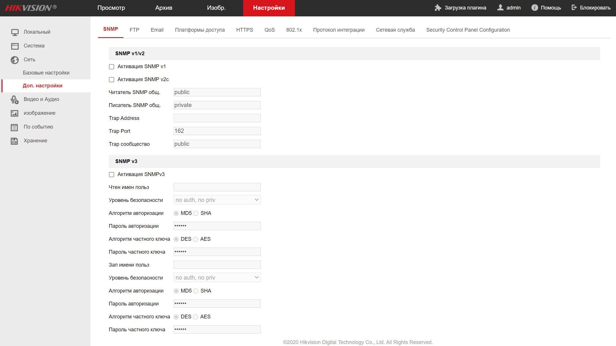 | Поддержка протоколов | TCP/IP, DHCP, Hik Cloud P2P, DNS, DDNS, NTP, SADP, SMTP, NFS, iSCSI, UPnP, HTTPS |