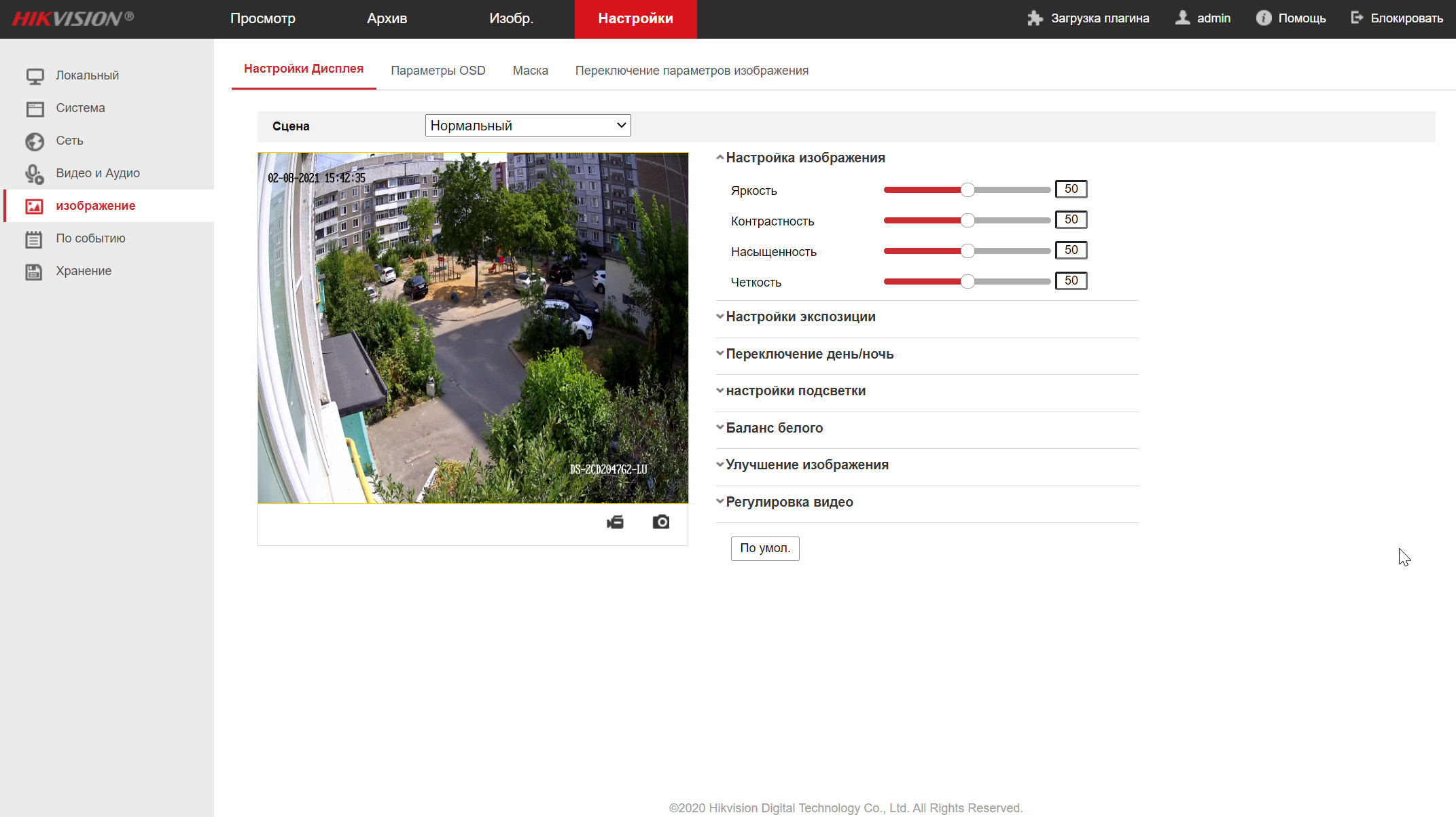 Кратко пробежимся по настройкам камер, взяв в качестве примера встроенный веб-сервер модели ColorVu DS-2CD2047G2-LU (2.8mm). Настройки двух других камер почти не отличаются от настроек указанной модели, разве что отдельные функции могут не работать. Или наоборот, работать. Как, например, зум или фокусировка, которыми оснащена только одна из камер, DS-2CD2643G0-IZS. Впрочем, в некоторых случаях возможности камер определяют состав программных модулей. Так, если камеры с технологией ColorVu, как более современные, поддерживают анализ шести типов Smart-событий, то в камере DS-2CD2643G0-IZS таких типов всего три.