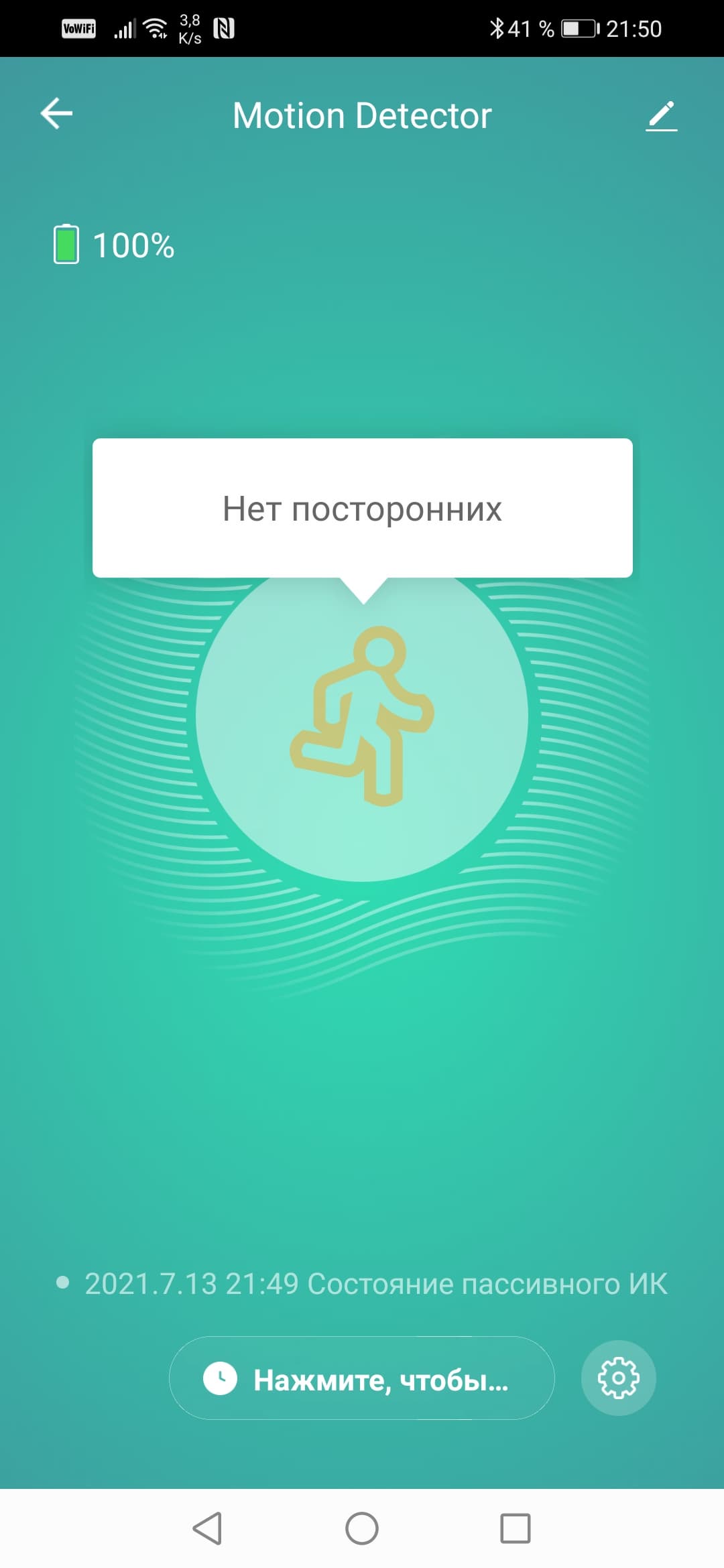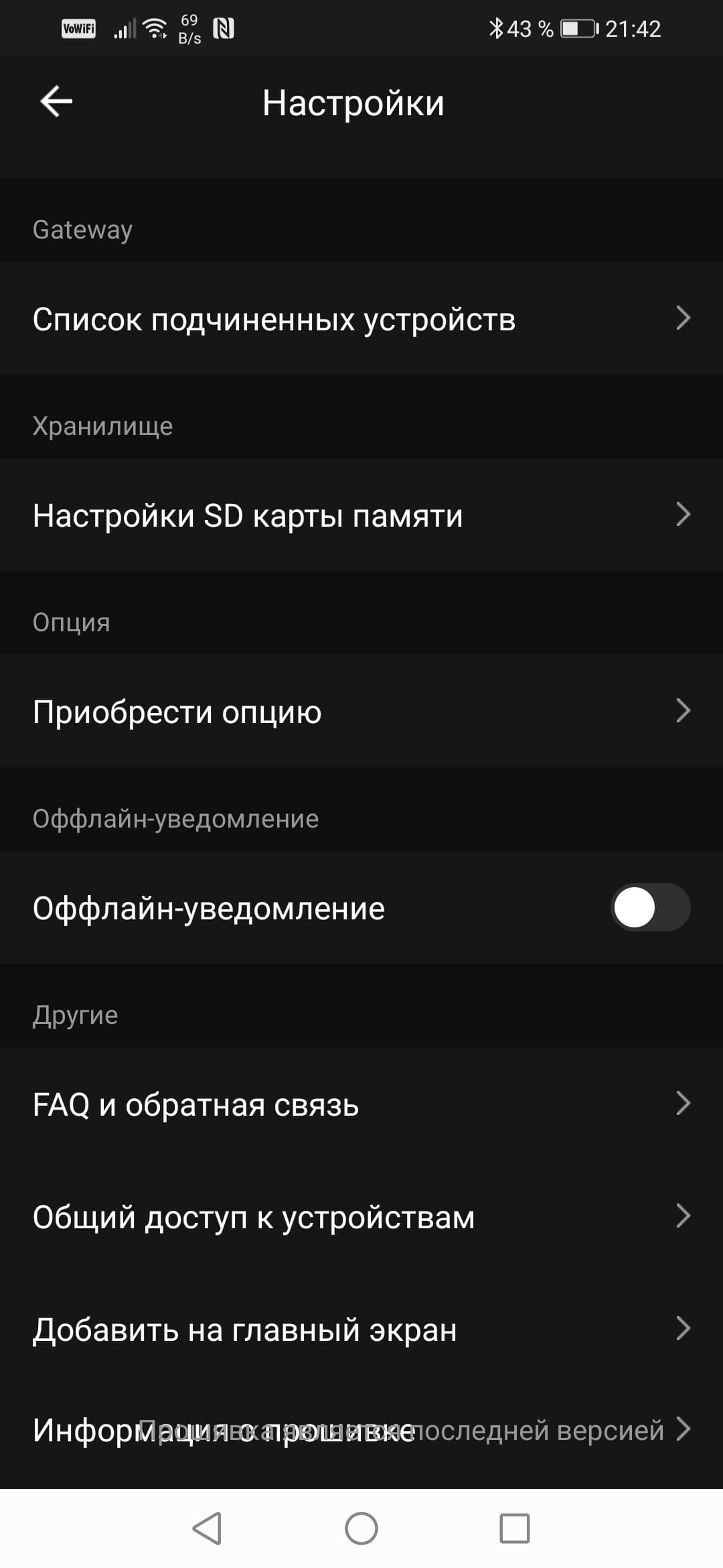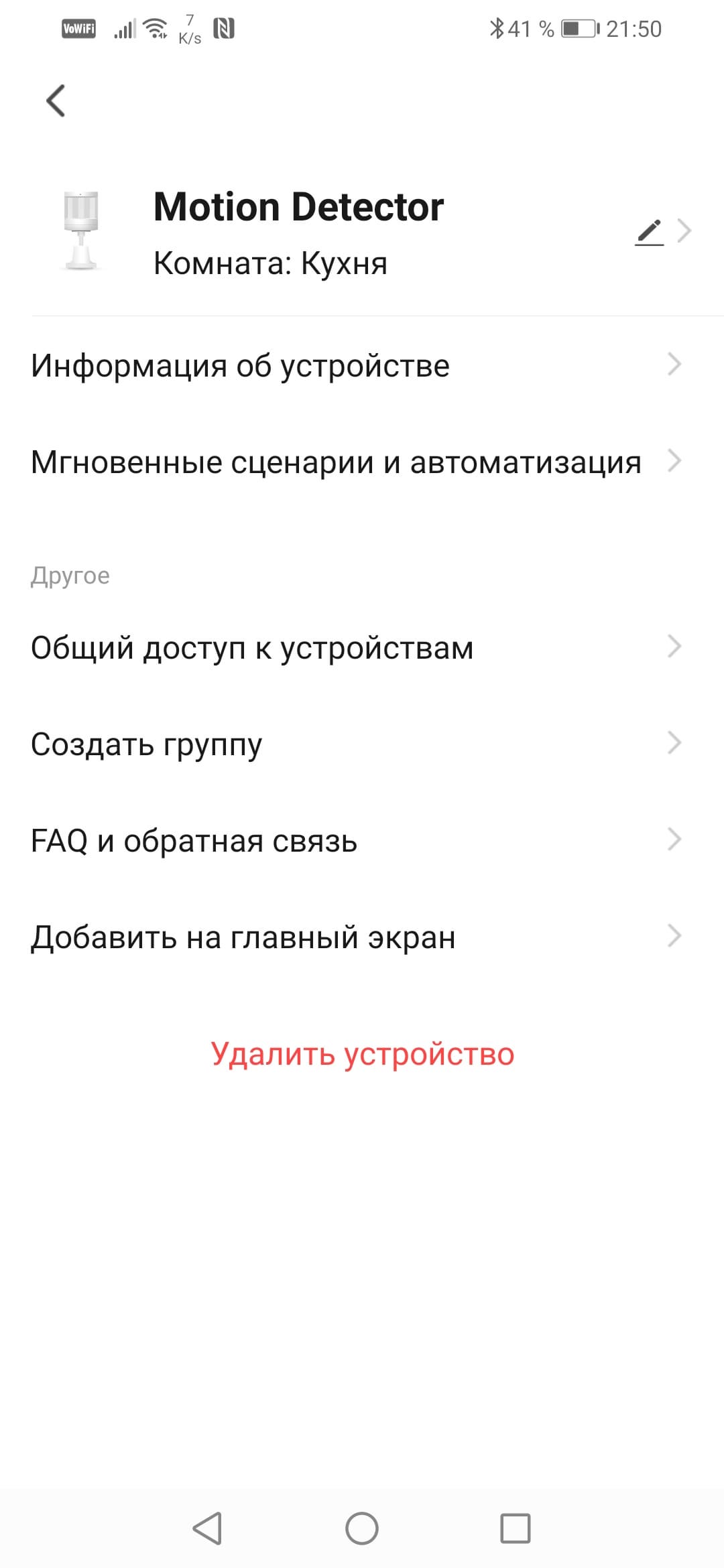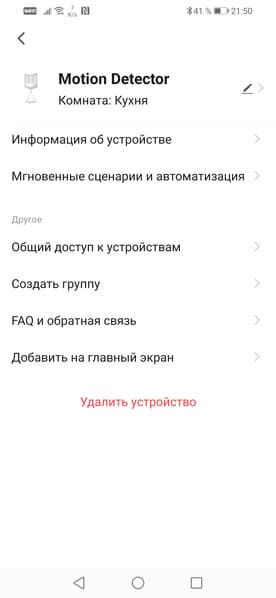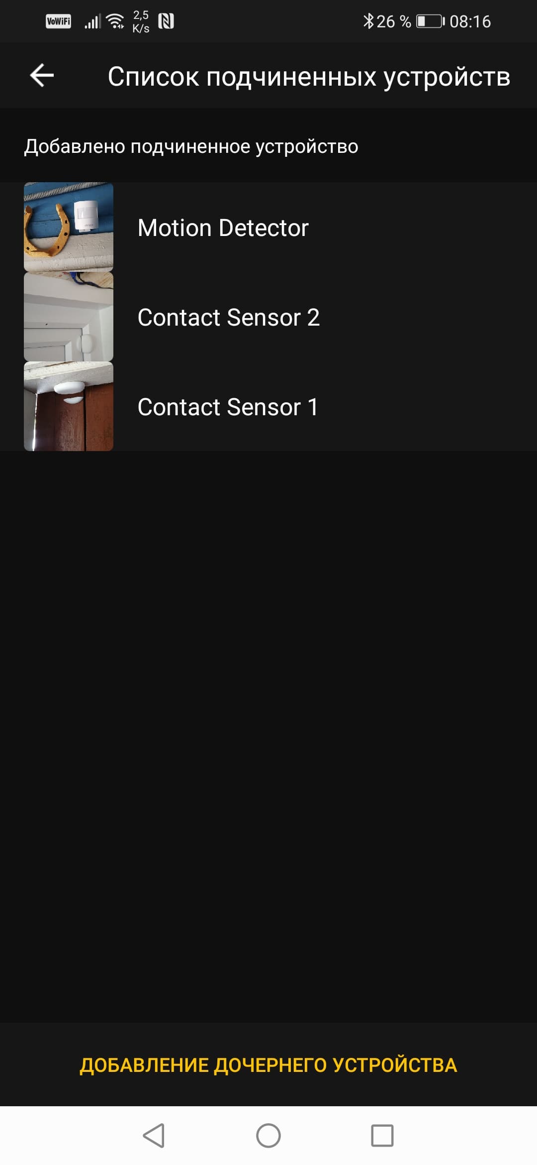 Настройки датчиков однотипны: на страничке каждого отображается текущее состояние, включая оставшийся заряд батареи, а в параметрах разрешается активировать или временно отключить оповещения о тревоге.