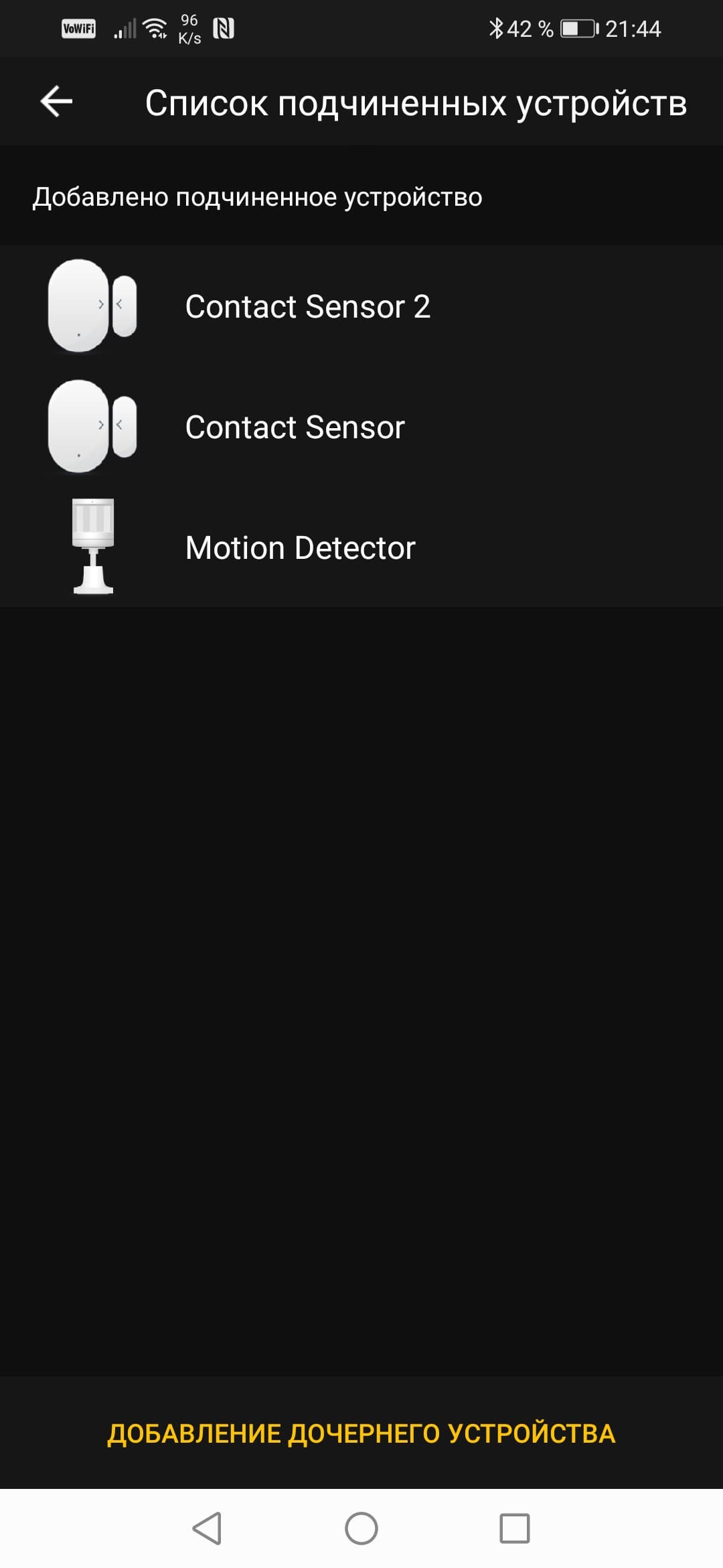 Нас сейчас интересует один пункт из этого меню: Список подчиненных устройств. Именно в нем производится подключение внешних датчиков.