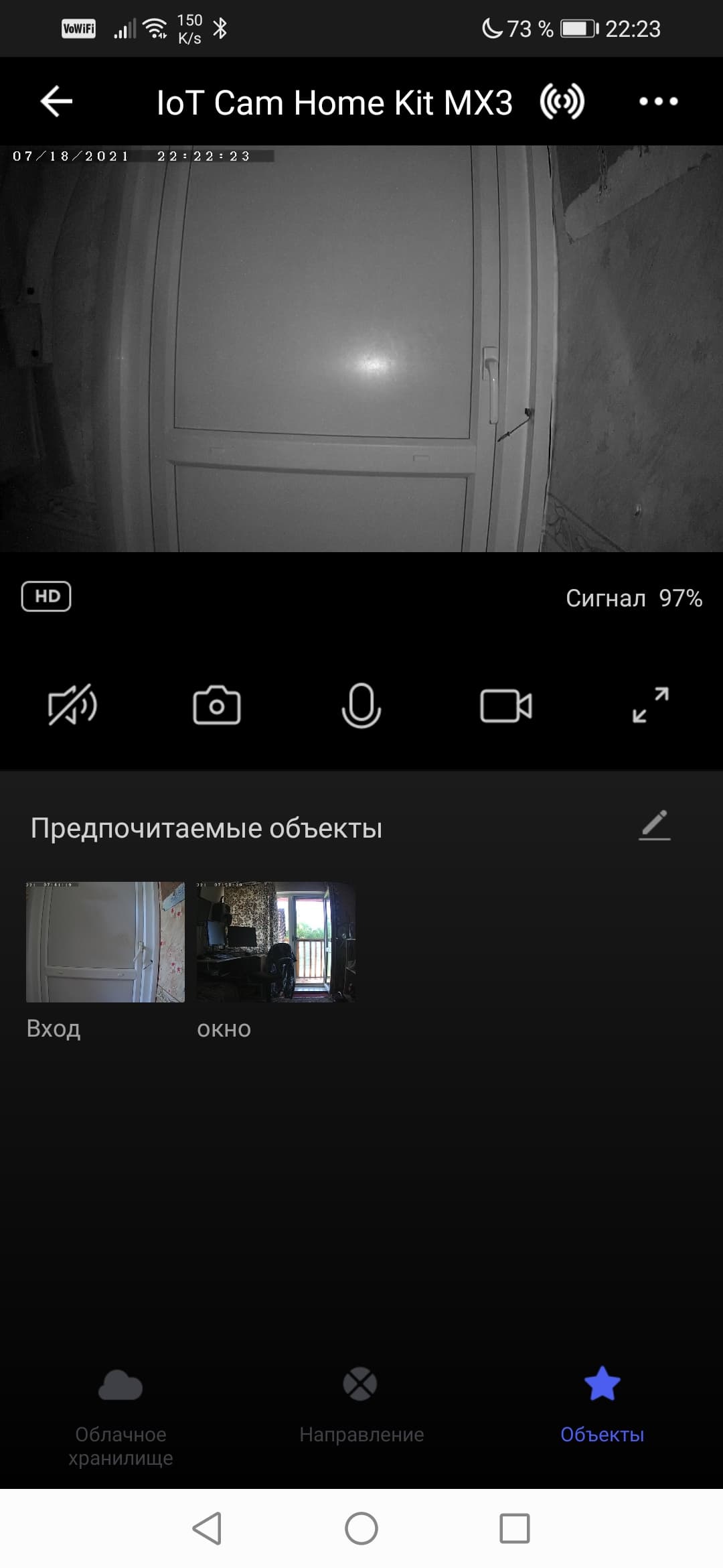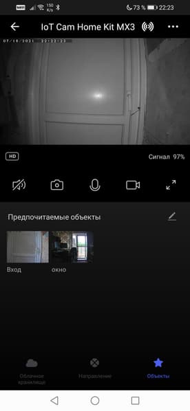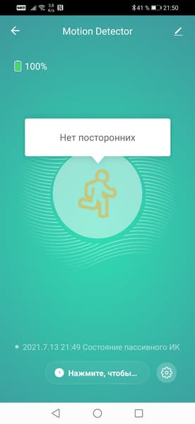 Сразу после подключения все датчики начинают работать в режиме охраны, отправляя на смартфон Push-оповещения о срабатывании герконов или о движении теплого тела. Каждая такая сработка приводит к активации довольно громкой сирены, звук которой издается динамиком камеры. Эту функцию можно отключить, конечно.