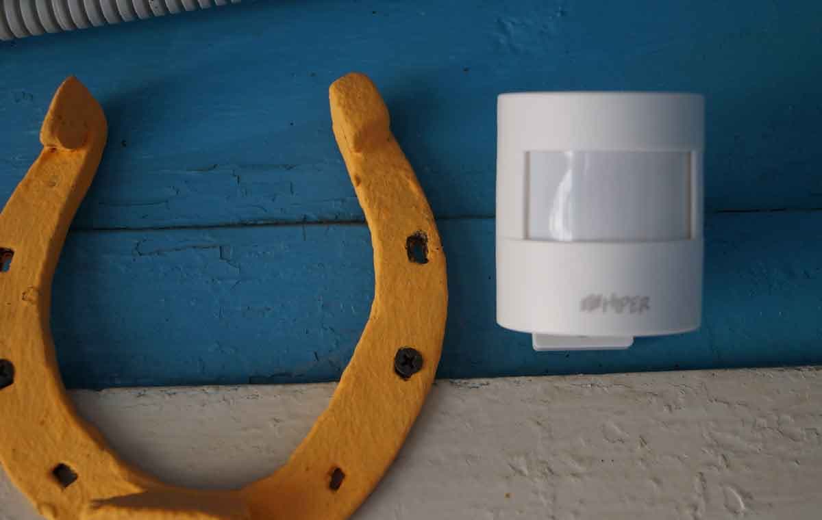 Коридорный датчик движения расположился над дверью, рядом с подковой.