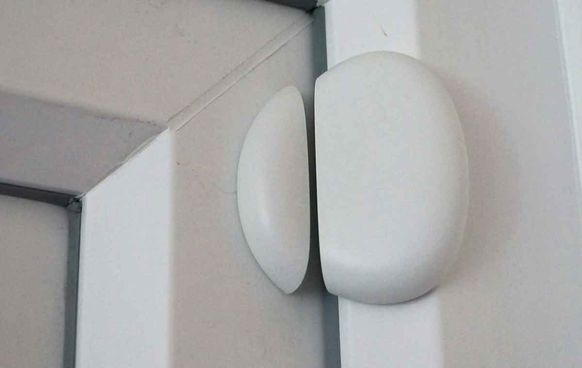 Конструкция датчиков-герконов, казалось бы, предусматривает расположение обеих частей на одной ровной плоскости, когда оконная рама или дверной косяк совмещаются на одном уровне, а не сходятся под углом. Но в жизни-то таких окон и дверей не бывает. За редкими исключениями. К счастью, магниты, встроенные в датчики, имеют достаточную мощность, чтобы сработка контакта происходила при любом расположении магнита относительно датчика. Хоть под углом, неважно. Главное, чтобы расстояние между устройством и магнитом не превышало одного-полутора сантиметров. И лишь при увеличении расстояния контакт будет срабатывать на разрыв. Поэтому дверные датчики были просто приклеены к косякам и дверям так, чтобы при закрытии дверей части не спотыкались друг о друга, а становились рядышком.