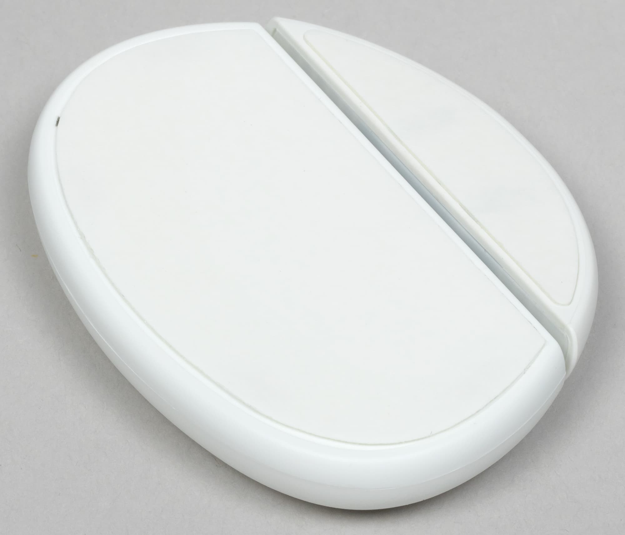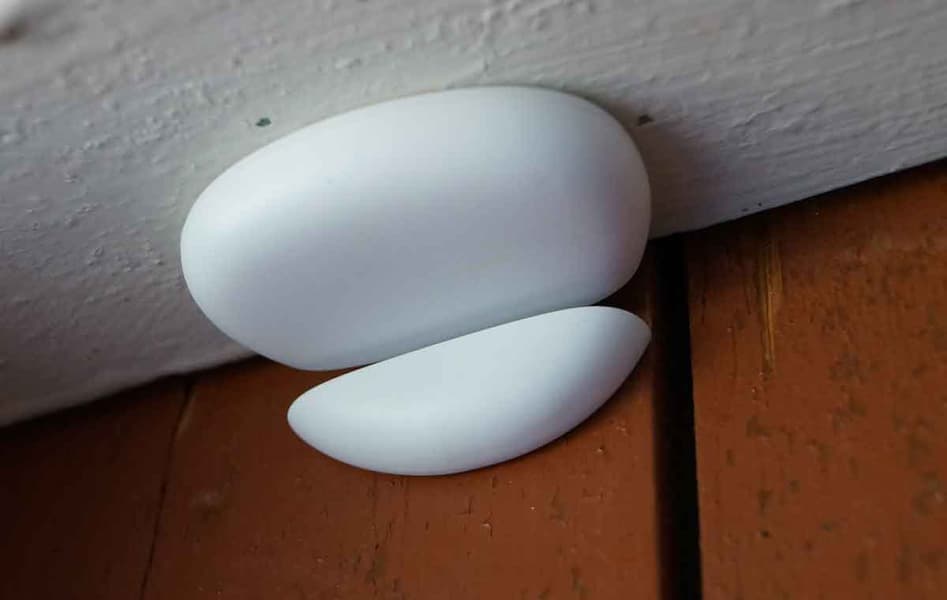Проще этого прибора и придумать нельзя. Впрочем, не так. Ведь здесь, кроме банального геркона (герметичный контакт), имеется еще и передатчик, отправляющий сигнал тревоги на свой хаб. Устройство состоит из двух деталей: основной прибор с контактом и управляющей электроникой плюс накладка с магнитом.