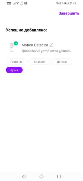 Эти датчики не нуждаются в Wi-Fi, они связываются с камерой в своем диапазоне, который не дает высоких скоростей передачи данных (большие объемы тут и не нужны), зато менее чувствителен к препятствиям. Подключение каждого устройства производится нажатием строки Добавление дочернего устройства, одновременно следует нажать и удерживать кнопки на датчиках. Ошибки исключены, мы несколько раз подключали и удаляли датчики, всякий раз на операцию подключения уходило не более 10 секунд. Здесь важно, чтобы датчик и хаб (камера) располагались недалеко друг от друга. Каждый из трех подключенных датчиков можно переименовать и разместить его в любом помещении, которые создаются в приложении заранее.
