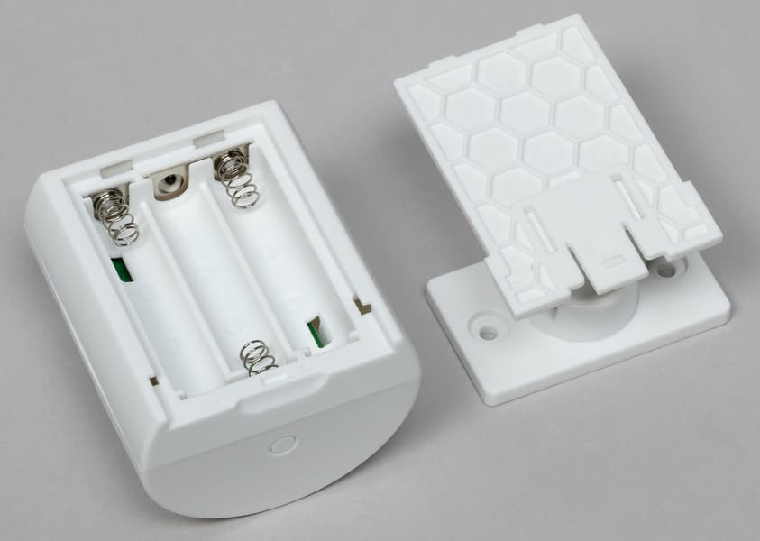 Питание датчик получает от трех 1,5-вольтовых батареек формата AAA. Их хватит для беспрерывной работы в течение двух лет при среднем уровне срабатываний.