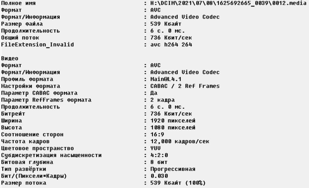 Камера, записывая архив, создает на карте памяти папку с именем DCIM, в которой находятся подкаталоги с именами в виде цифр и структурой ГОД | МЕСЯЦ | ДЕНЬ. Каждый день содержит множество папок, в которых находятся записи событий. Эти отдельные видеоролики сохраняются в контейнер *.media. Он не поддерживается программными плеерами, просмотреть их ролики можно только через фирменное приложение посредством таймлинии либо скачав на смартфон. Характеристики видео таковы: